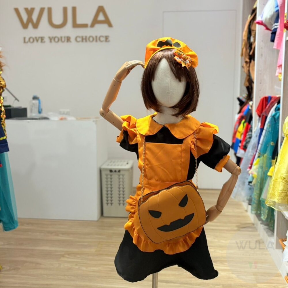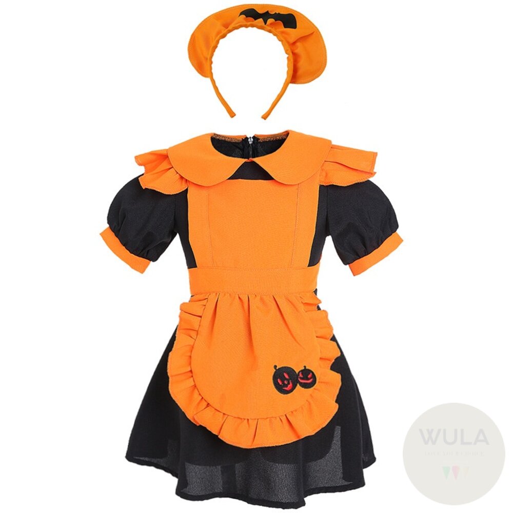 名稱:南瓜刺繡女僕裝 材質:沙丁+制服呢 內容物:頭飾、圍裙、裙 重量:250-300g