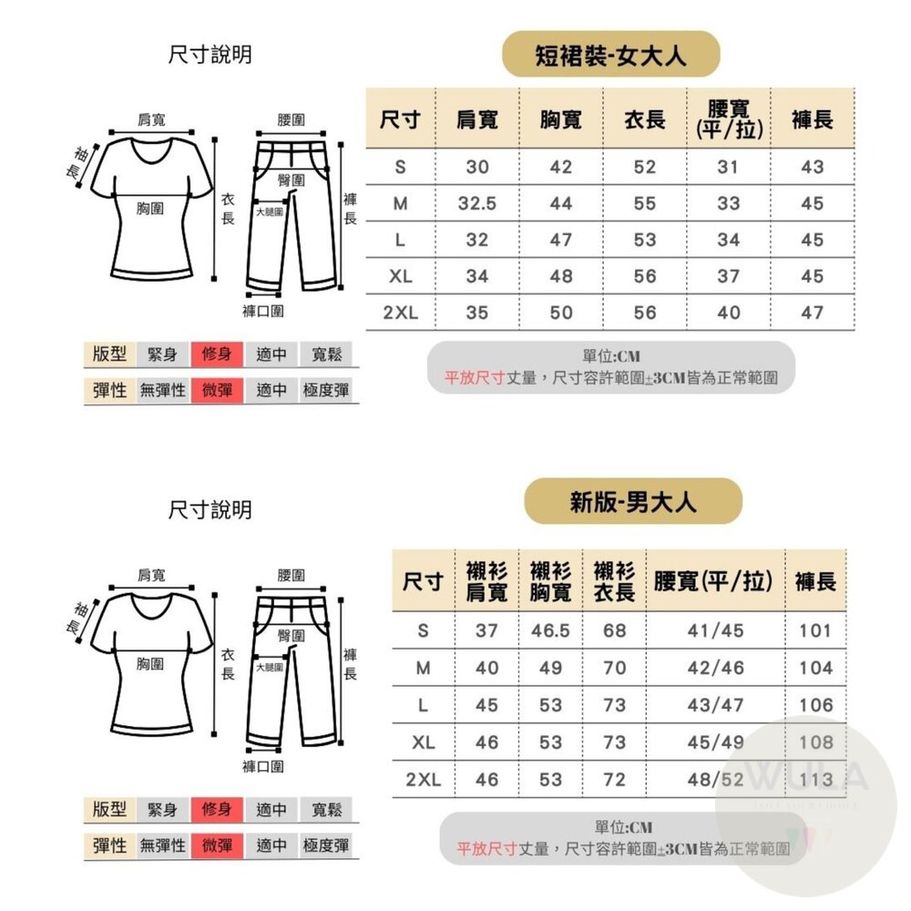 | 選項 | 100cm | 110cm | 120cm | 130cm | 140cm | 150cm | S號 | M號 | L號 | XL號 | 2XL號 |
