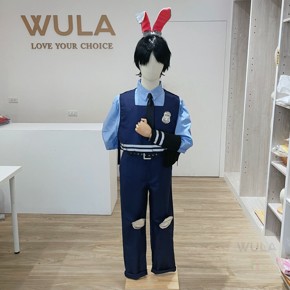 男大人內容物:襯衫、馬甲、褲子、皮帶、領帶、警徽、兔子髮箍、小包、護膝(對)、手腕套(對)