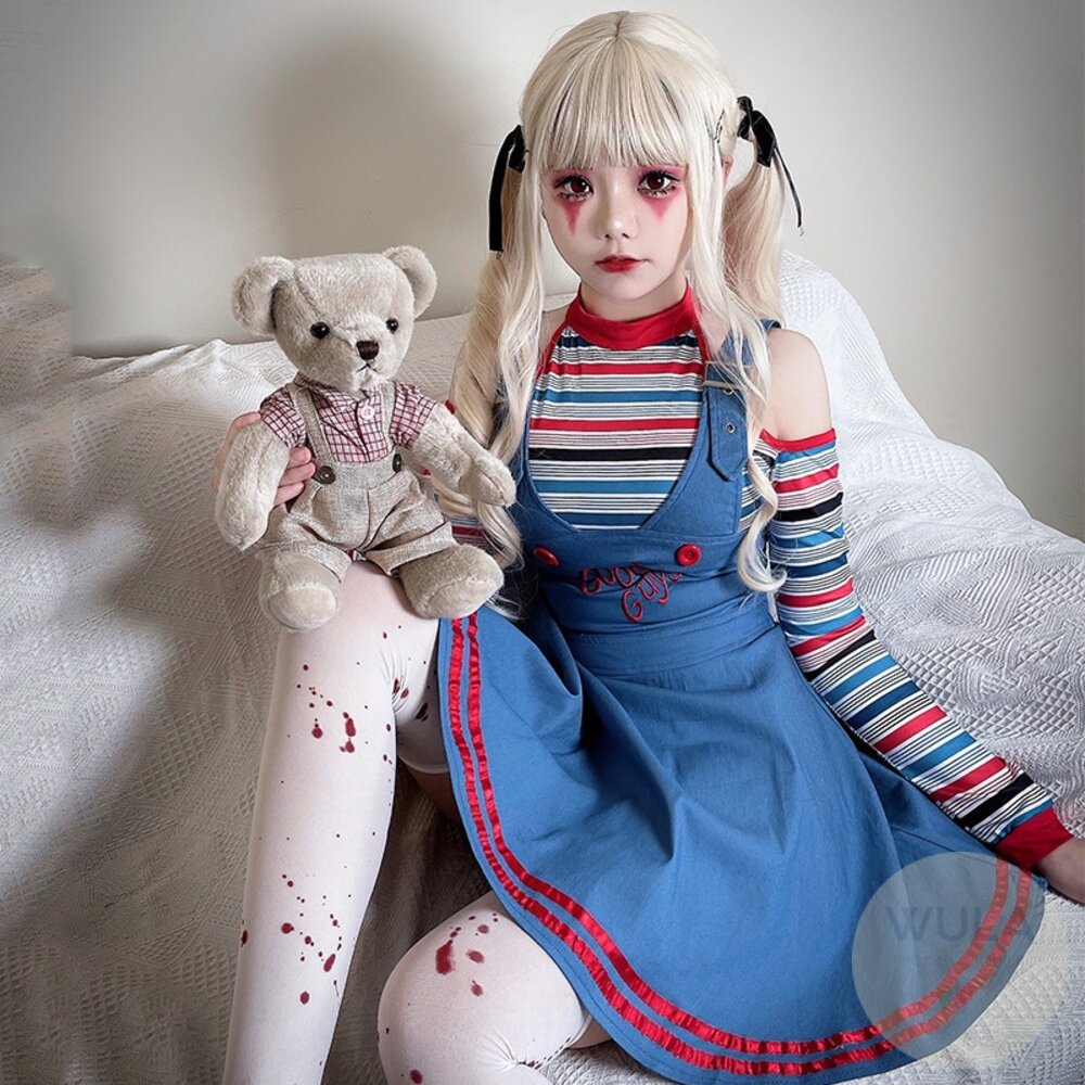 女成人內容物:1.上衣 2.背帶裙 3.紅絲帶髮帶*2