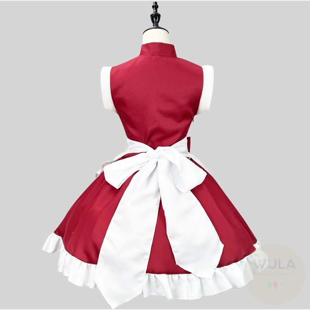★模特另有搭配裙撐增加蓬度,請在賣場中搜尋🔎「裙撐」 名稱:中國風聖誕女僕裝 材質:滌綸 內容物質:1.連身裙 2.圍裙 3.髮箍 4.蝴蝶結