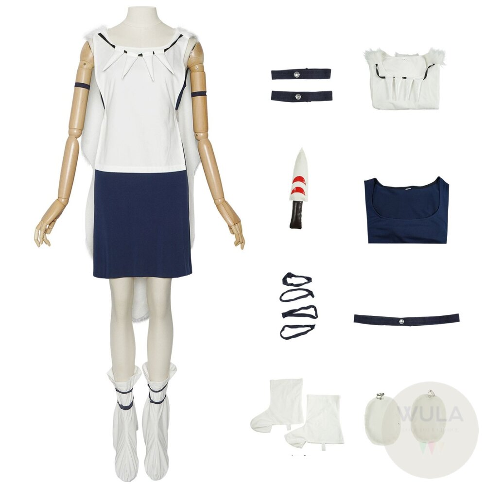 名稱:魔法公主-小桑 內容物: 1.上衣(含披風) 2.連身衣 3.腿帶*4 4.臂飾*2 5.頭飾*1 6.武器 7.耳環(對) 8.鞋套(雙)