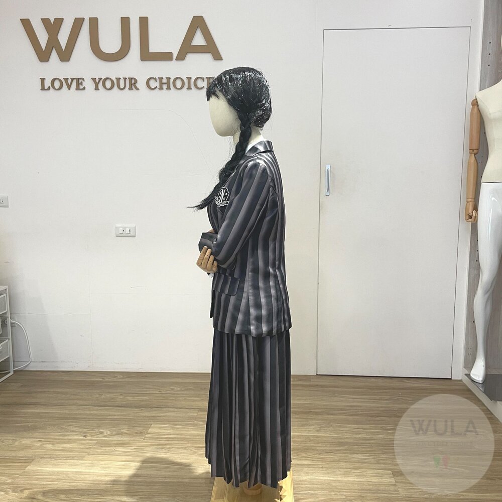 全套S2黑色制服內容物:1.襯衫 2.背心 3.領帶(拉鍊式) 4.外套(墊肩設計) 5.百褶長裙