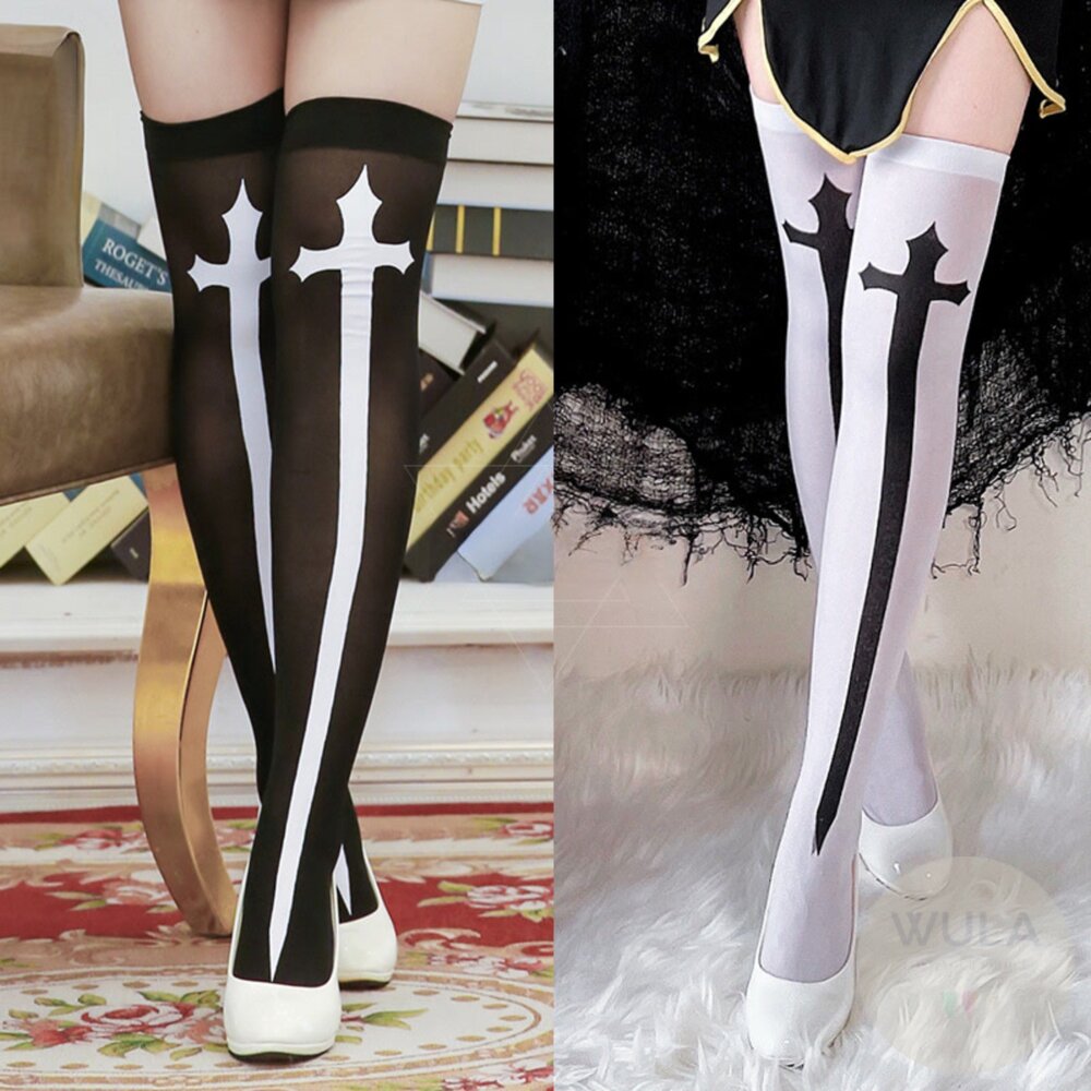 名稱:十字架膝上襪(兩色) 內容物:1.襪子(雙)