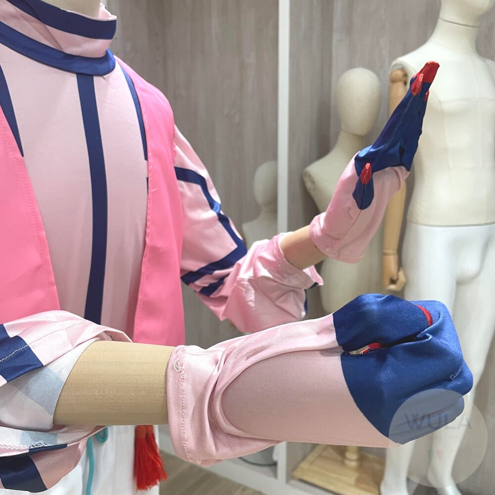 名稱:鬼滅之刃-猗窩座 服裝內容物:1.上衣 2.背心 3.褲子 4.腰繩 5.手套(雙)