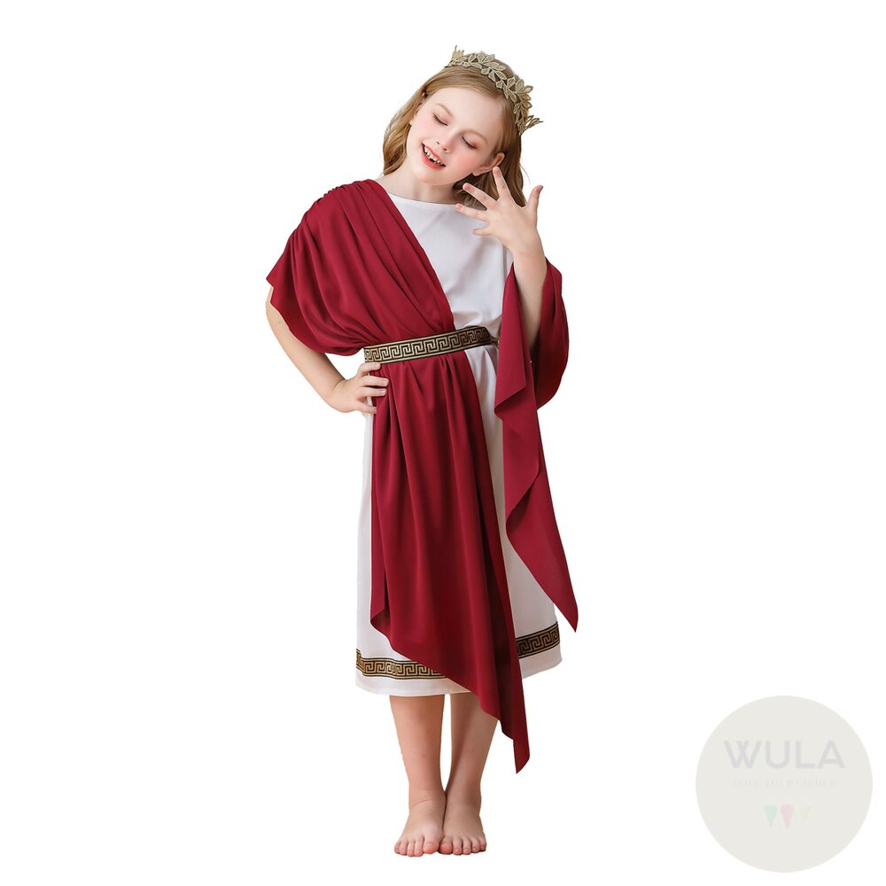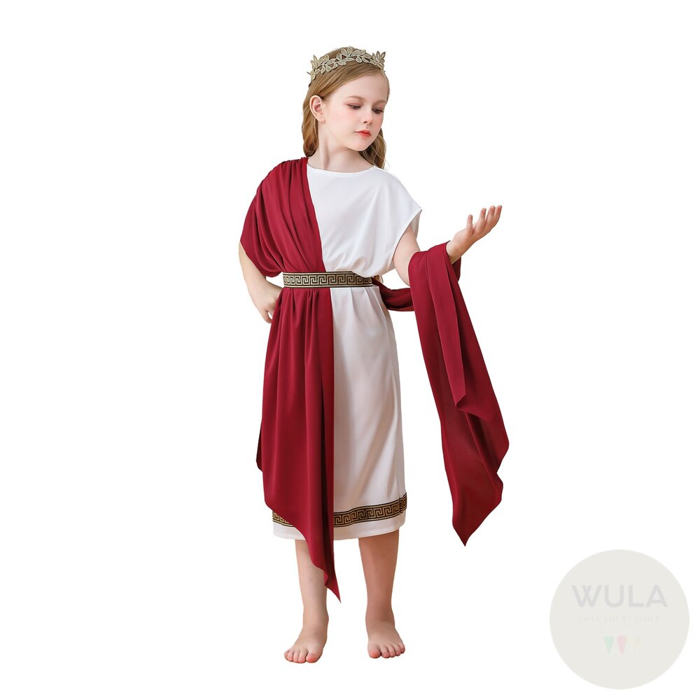名稱:古羅馬長袍(兒童版) 內容物:1.連身裙(含披肩) 2.腰帶 3.頭飾