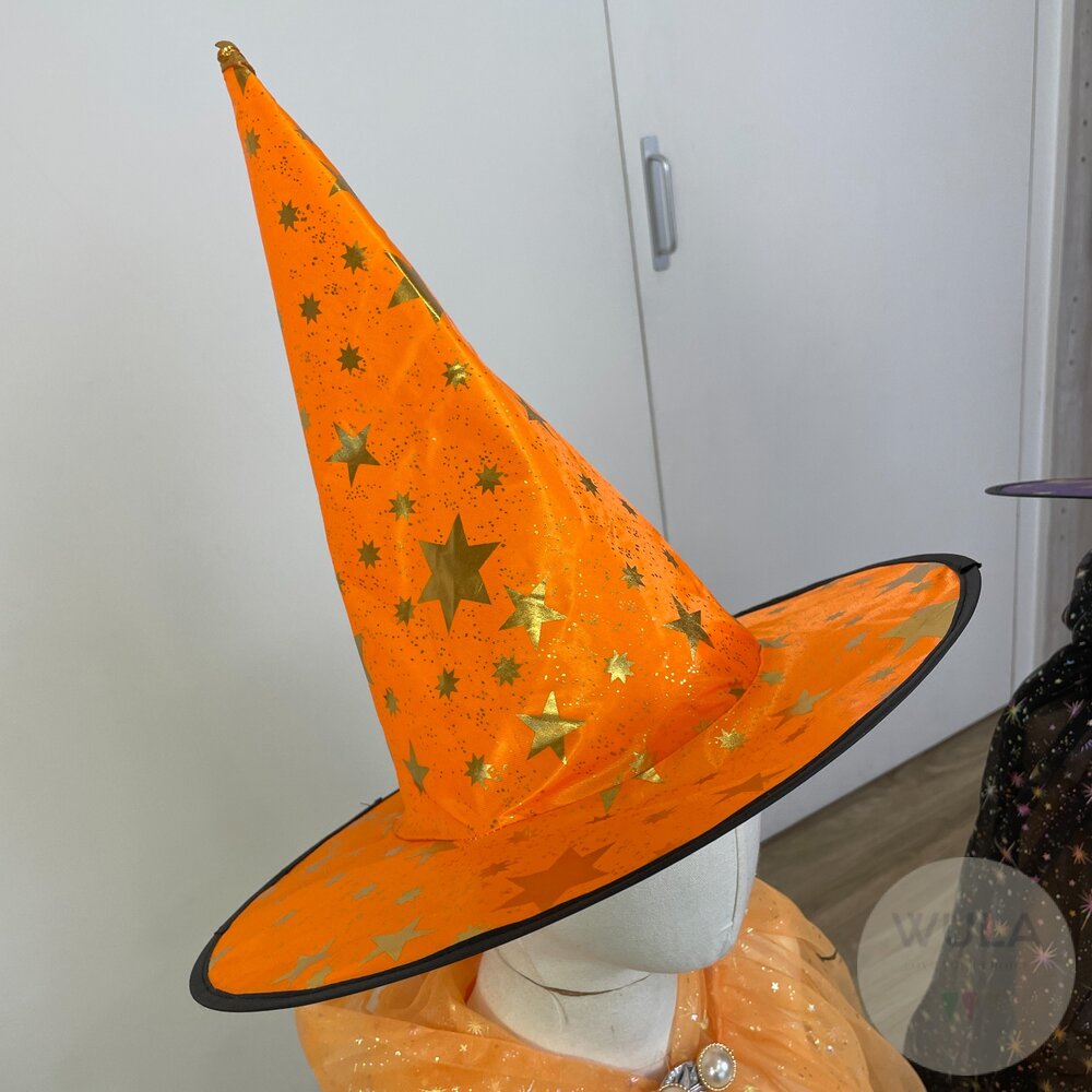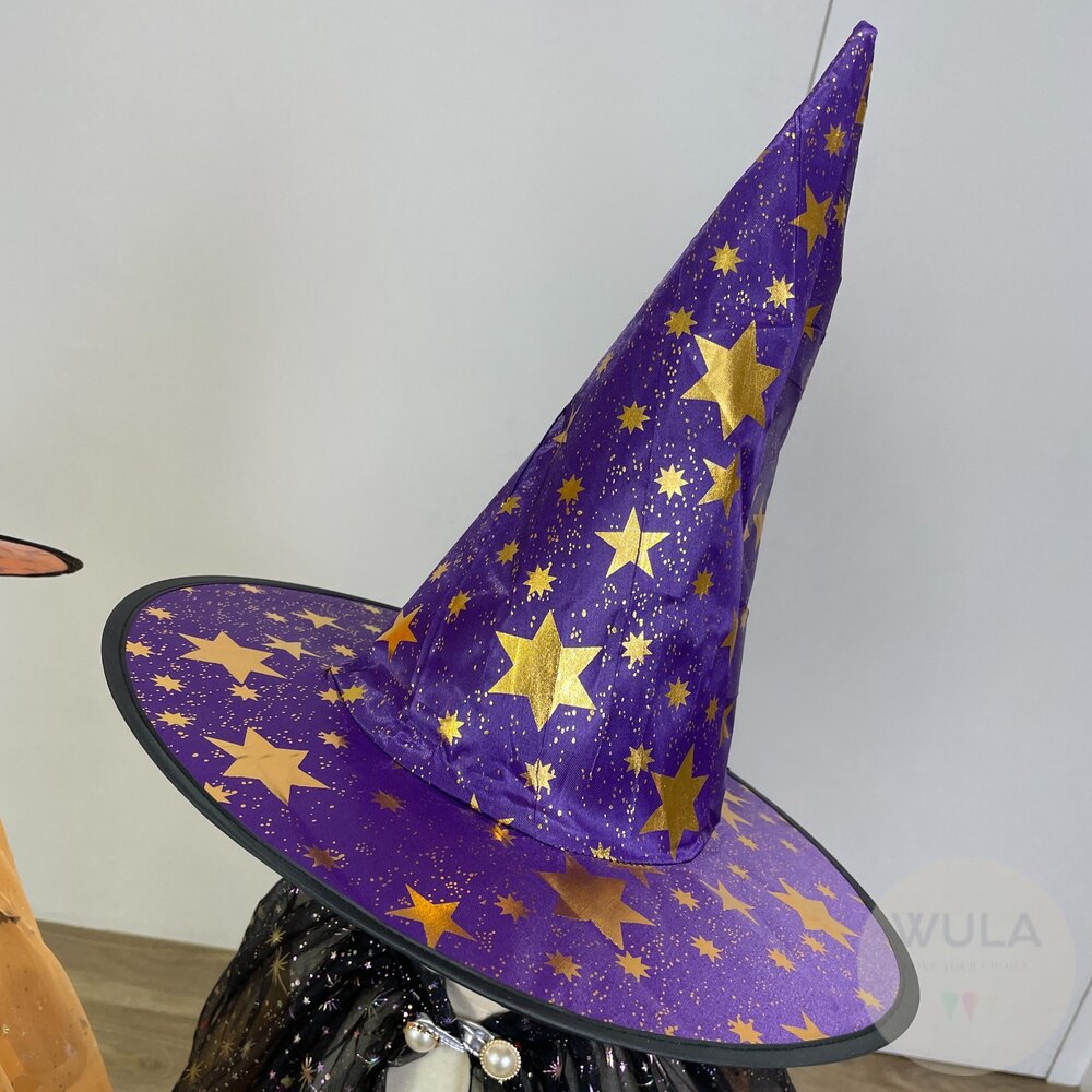名稱:小女巫道具組 尺寸: 魔法掃帚67-88cm 魔法帽直徑38cm,帽高35cm