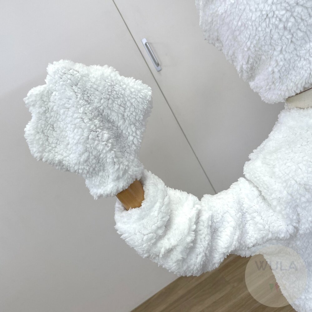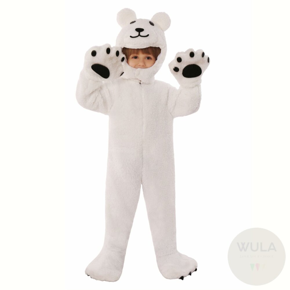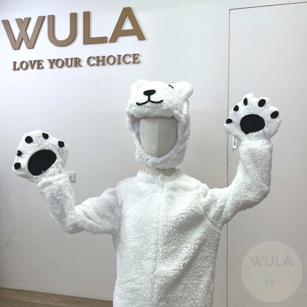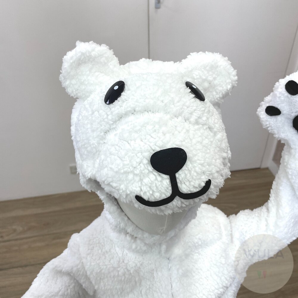 名稱:白熊連身裝 內容物:1.連身裝 2.熊掌手套(雙) 3.熊頭套