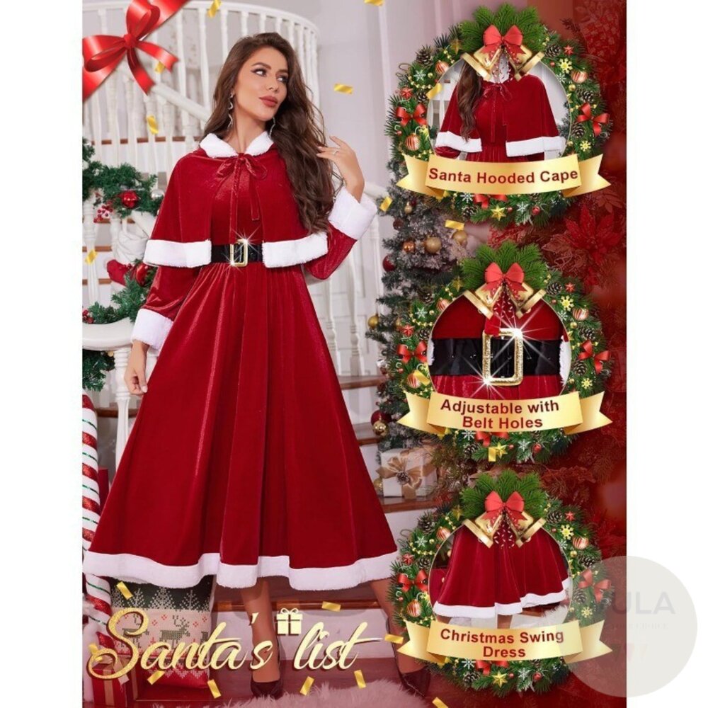 名稱:披風連帽聖誕裙 內容物:1.連身裙 2.腰帶 3.披風