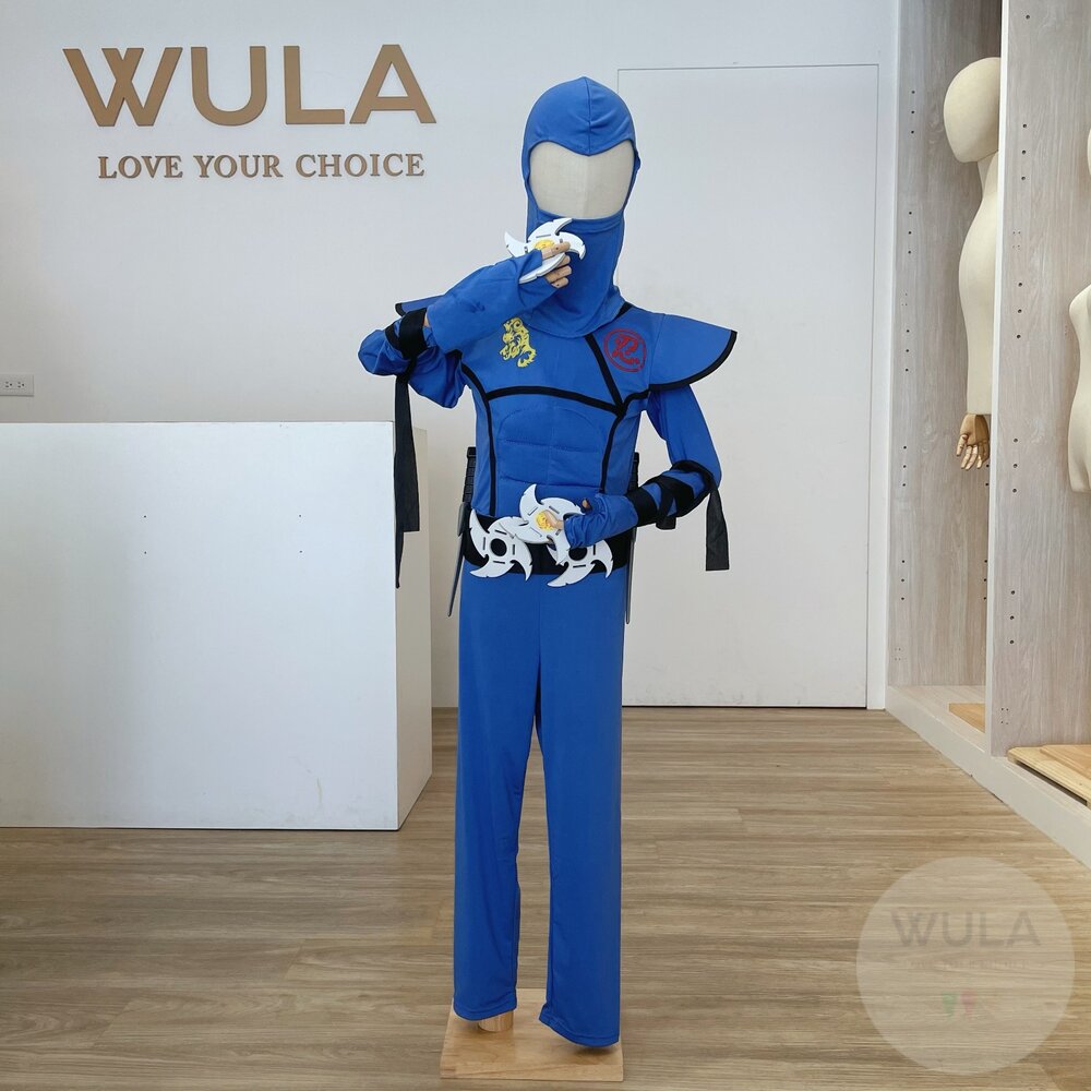 商品名稱:忍者服裝(兒童版) 內容物:1.連體衣 2.帽子 3.腰帶 4.手套(雙) 5.匕首(對) 6.飛鏢*2 7.綁手繩*2 8.綁腳繩*2