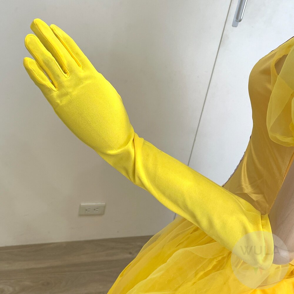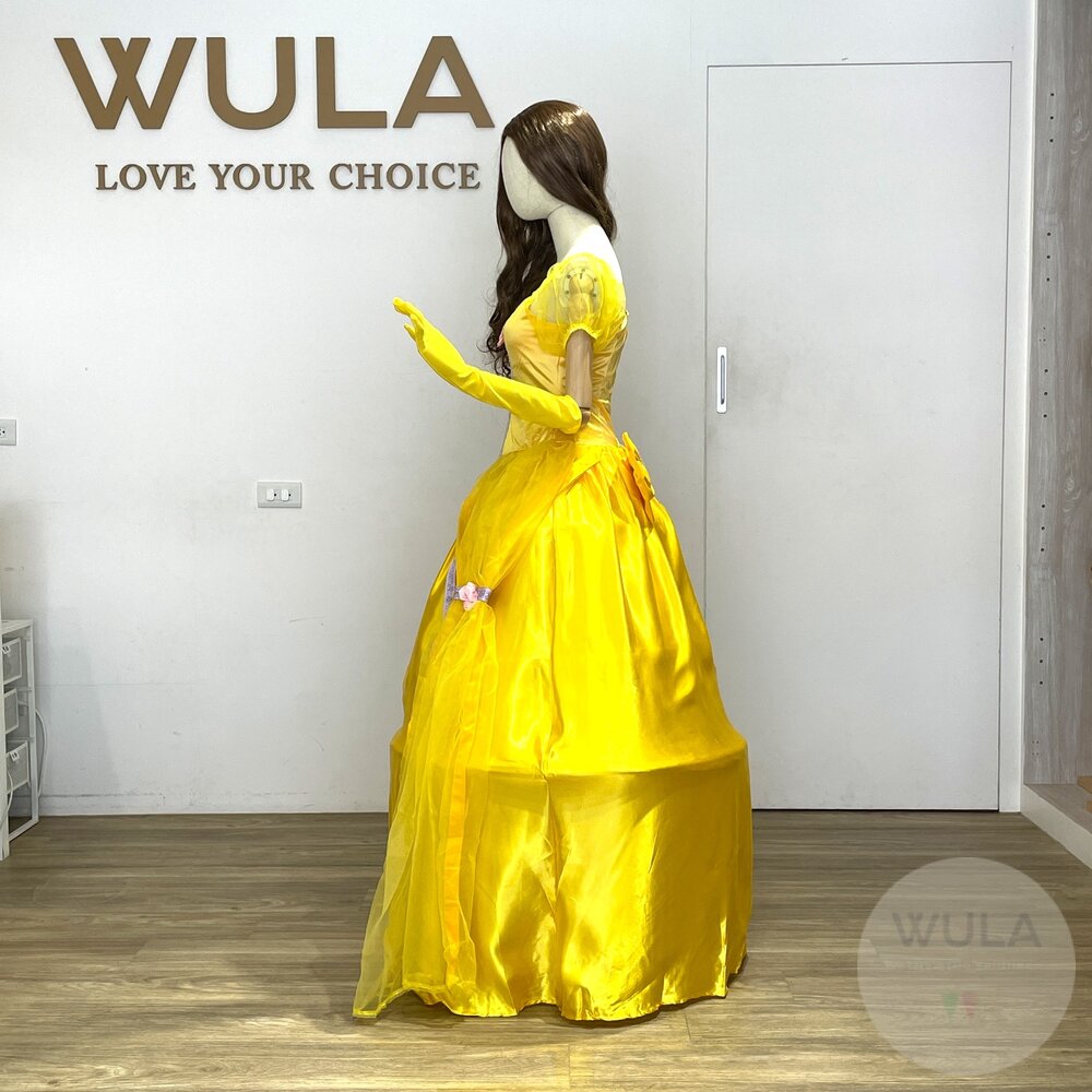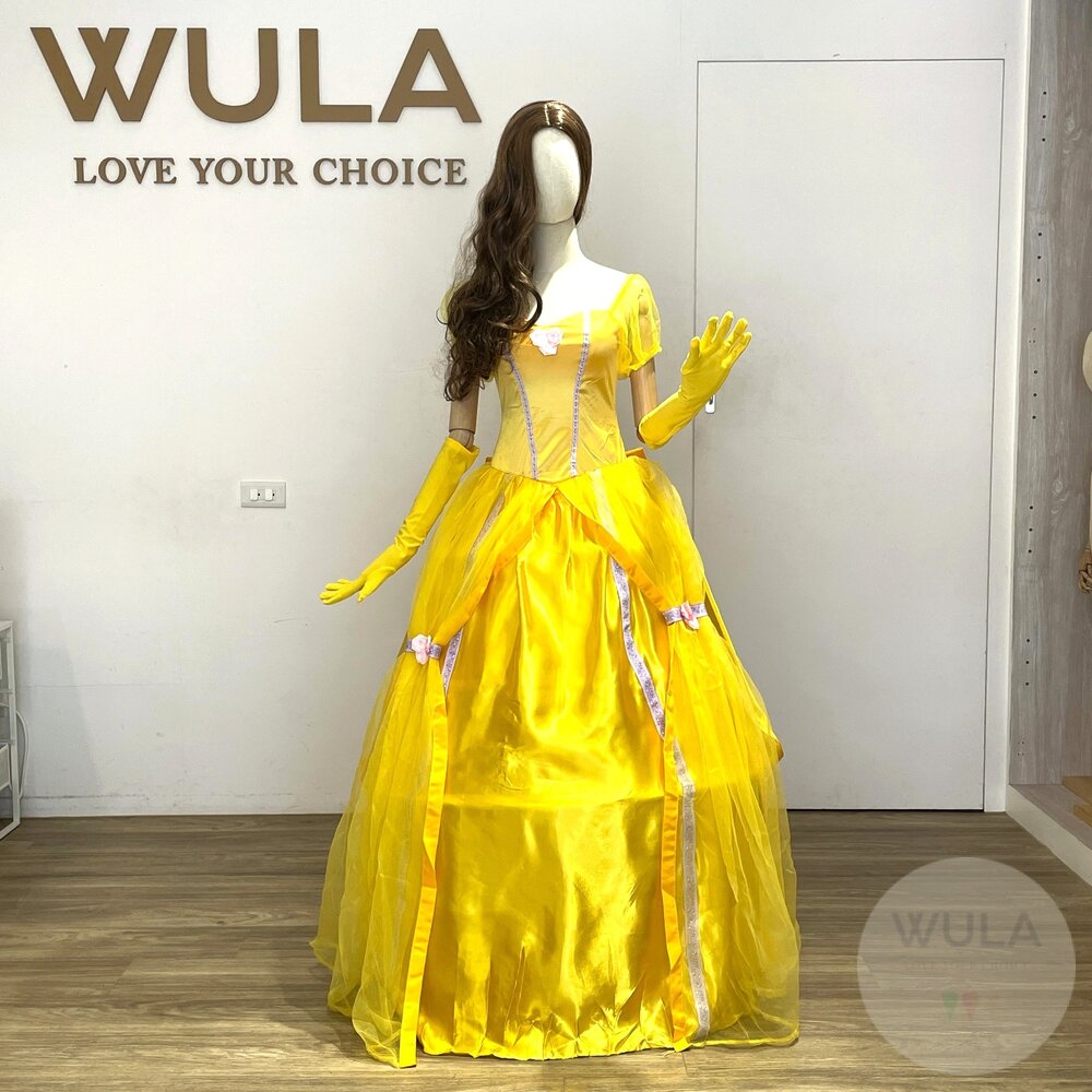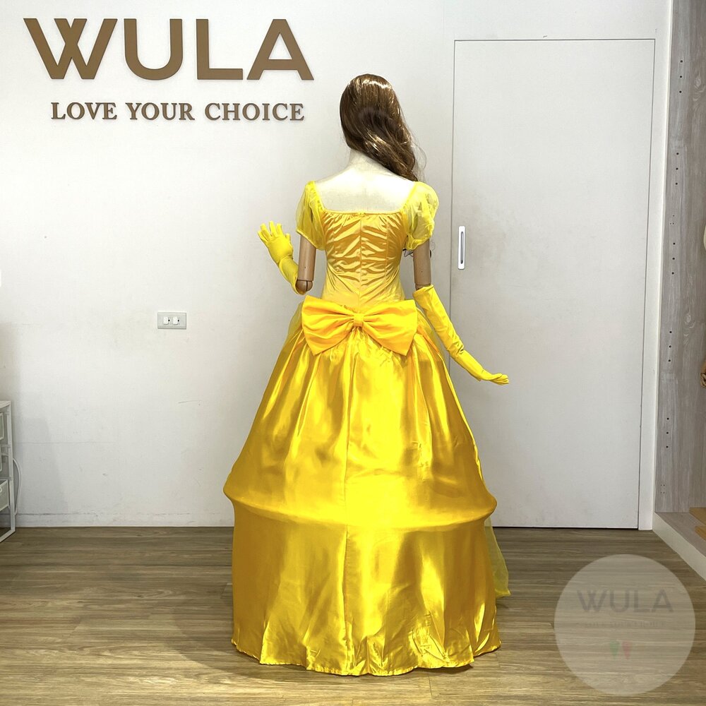 名稱:美女與野獸-貝兒公主 內容物:1.連身裙 2.後背蝴蝶結 3.手套(雙) 4.襯裙