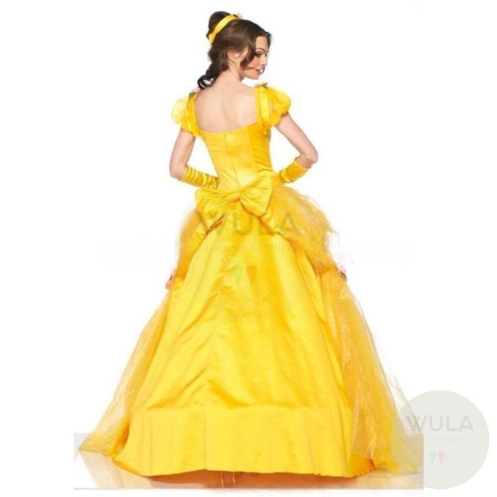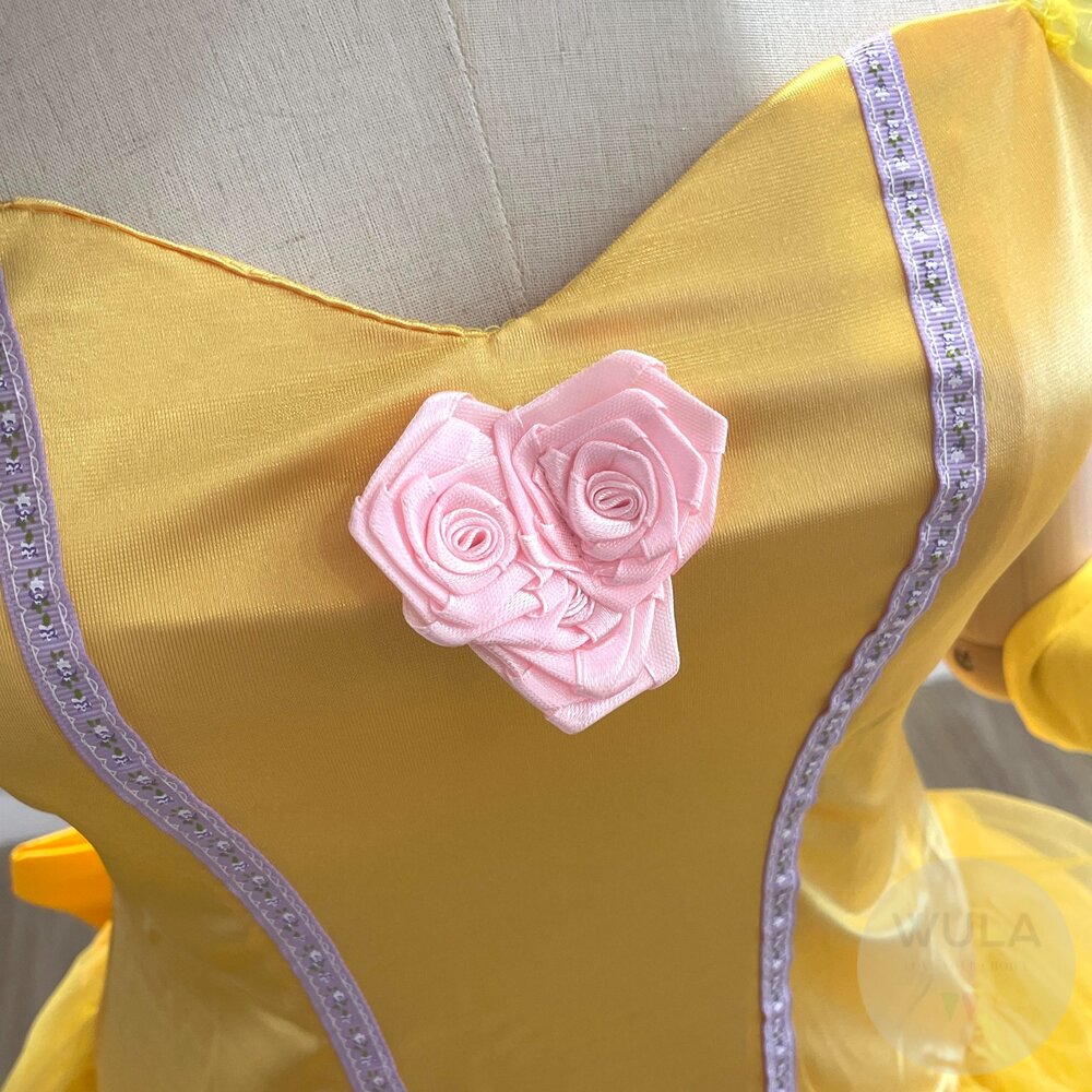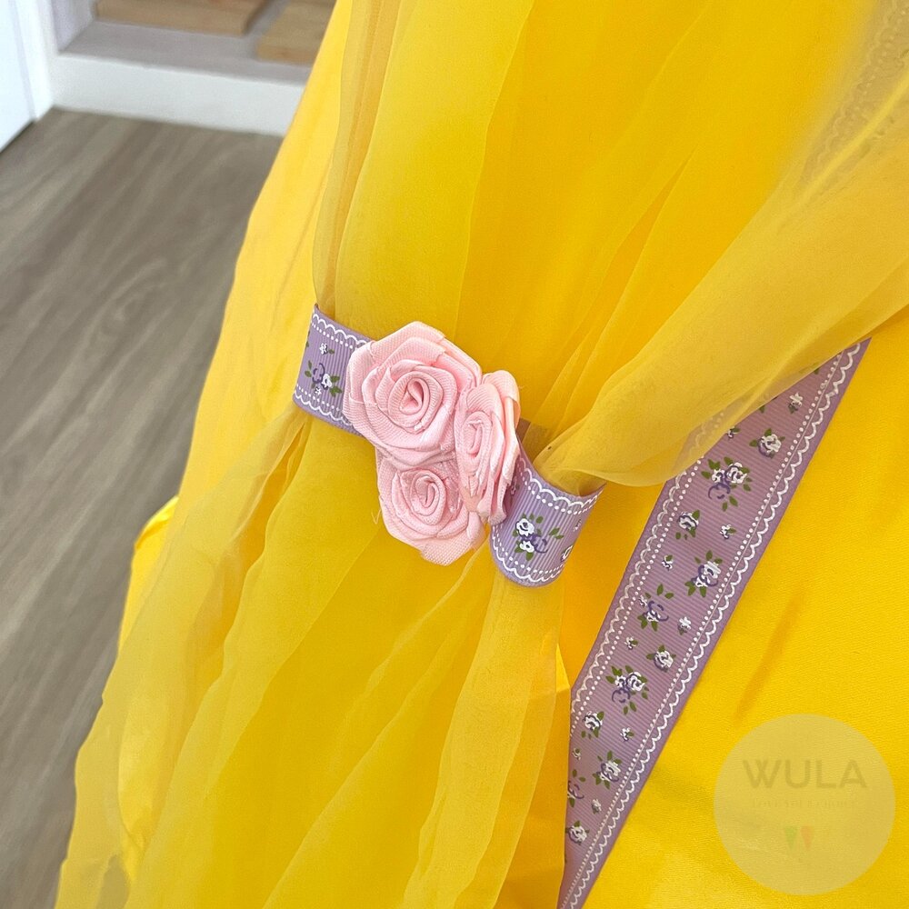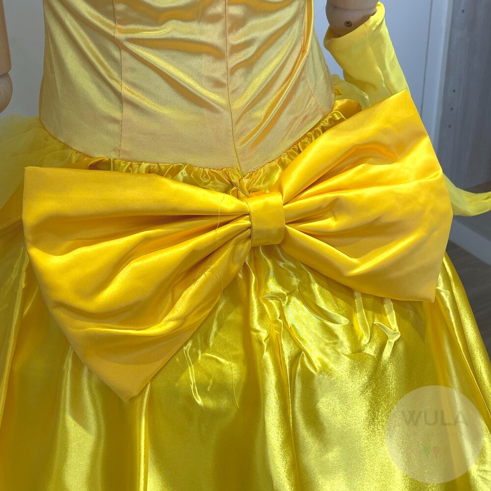 名稱:美女與野獸-貝兒公主 內容物:1.連身裙 2.後背蝴蝶結 3.手套(雙) 4.襯裙