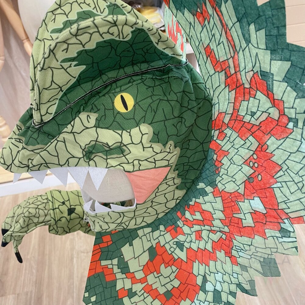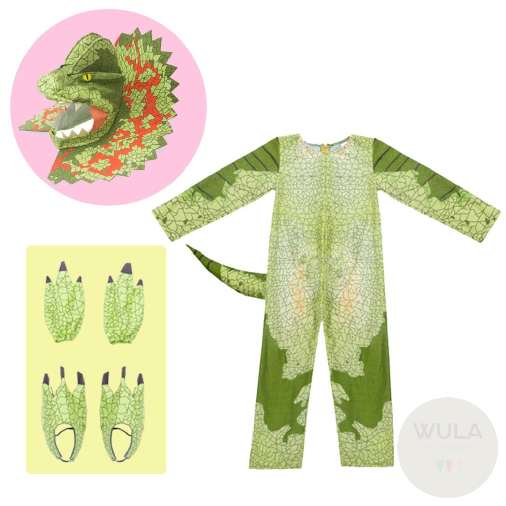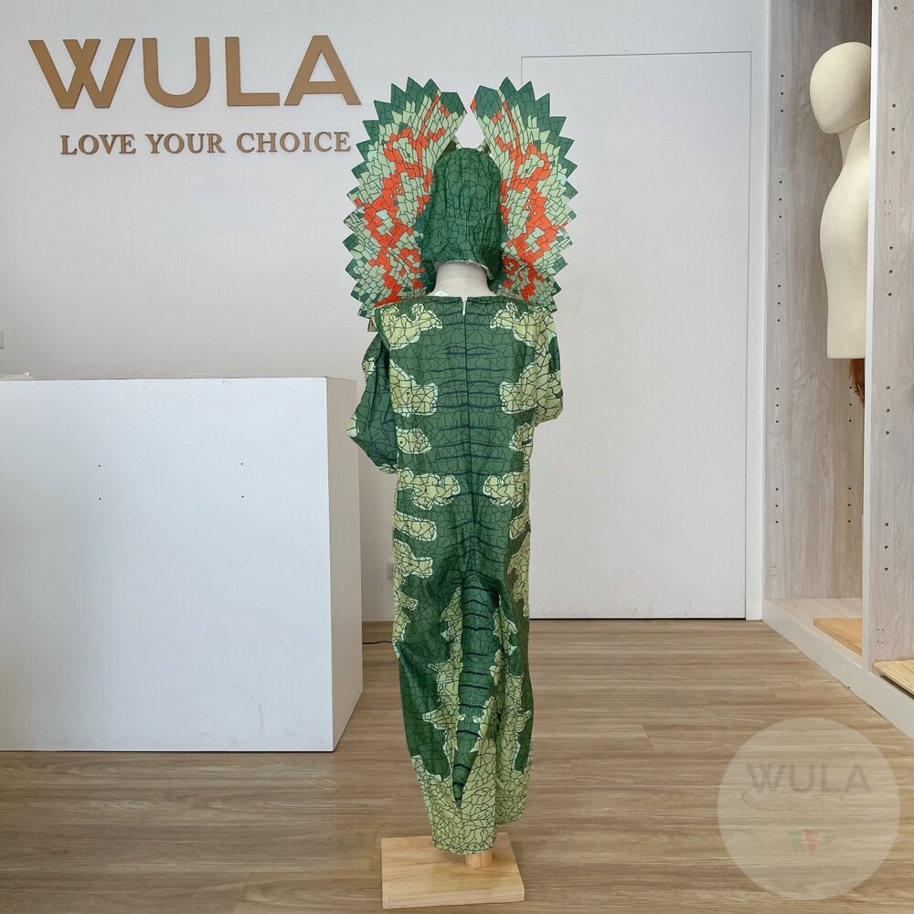 名稱:侏羅紀公園-傘蜥蜴 材質:滌綸 內容物:1.連體衣 2.頭套 3.手套(雙) 4.腳套(雙)