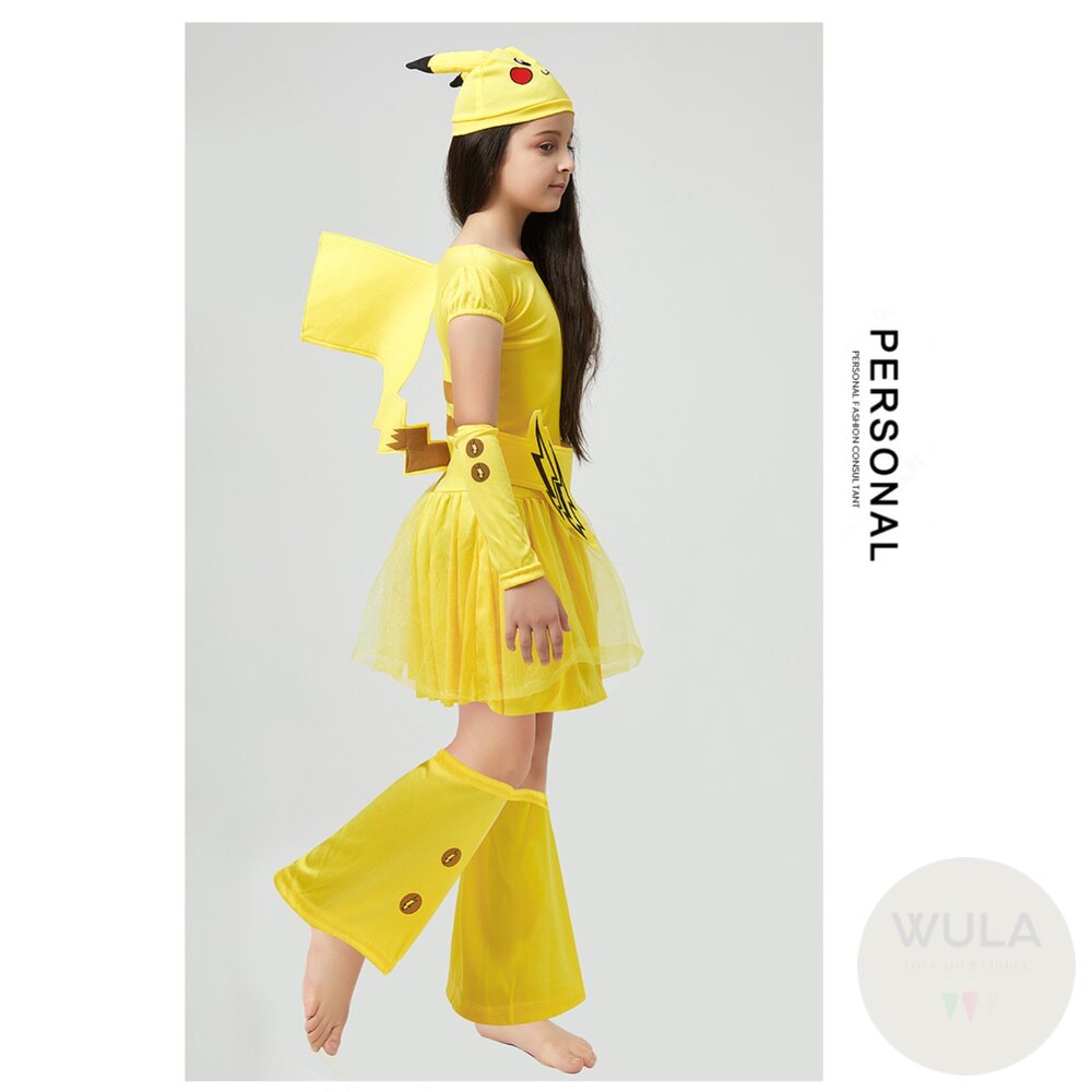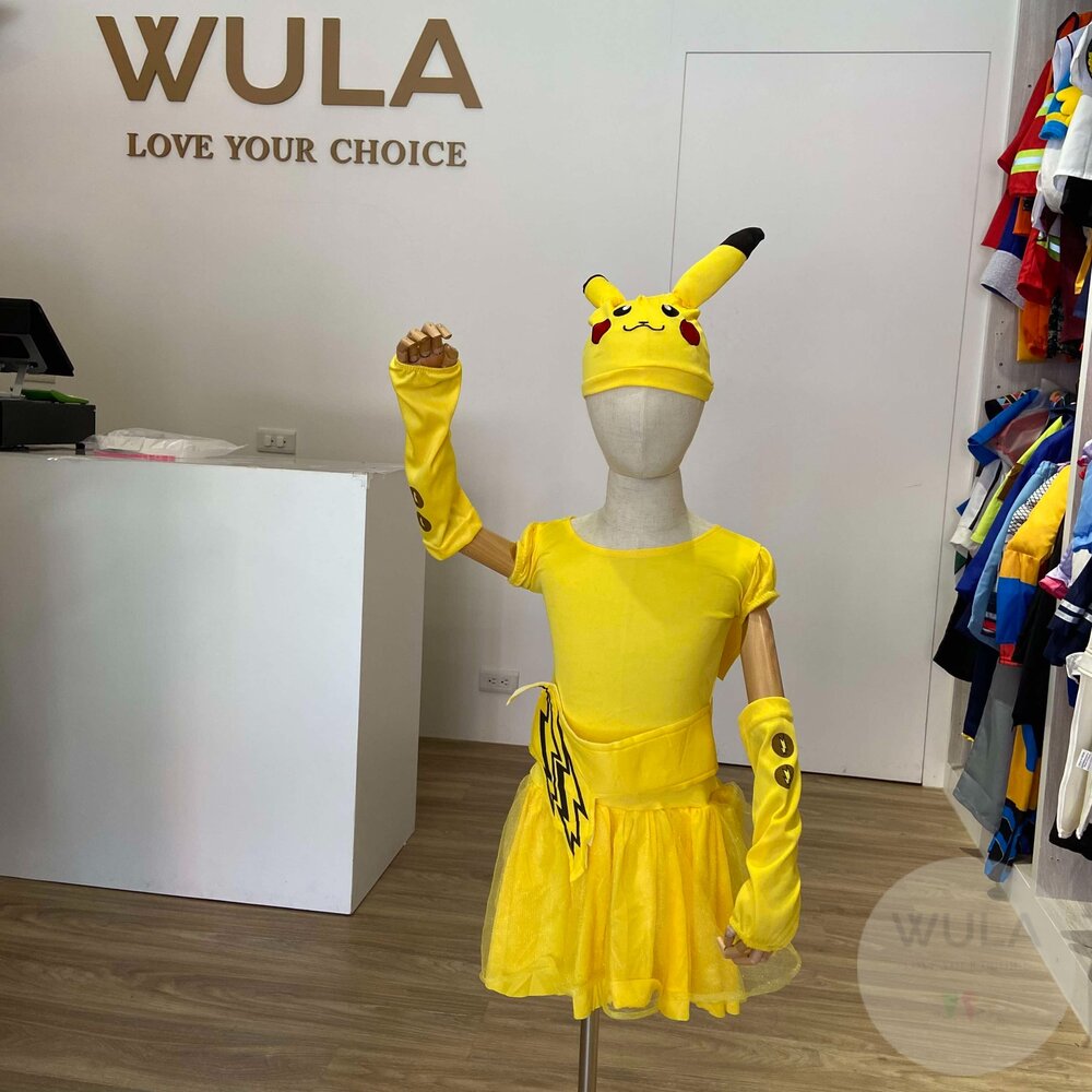 名稱:寶可夢-皮卡丘套裝 內容物:1.連身裙 2.帽子 3.袖套(雙) 4.腿套(雙)