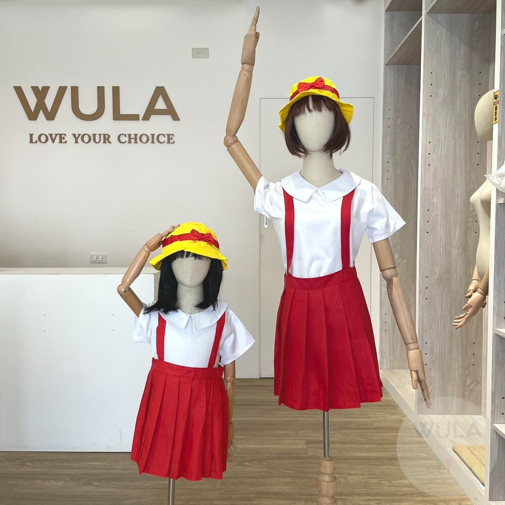名稱:櫻桃小丸子 材質:精紡柔美呢 內容物:1.白襯衫 2.吊帶裙 3.帽子