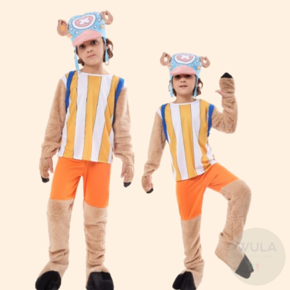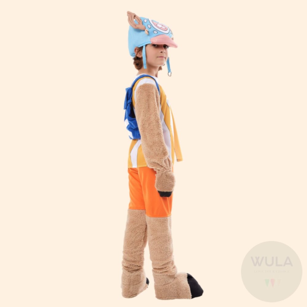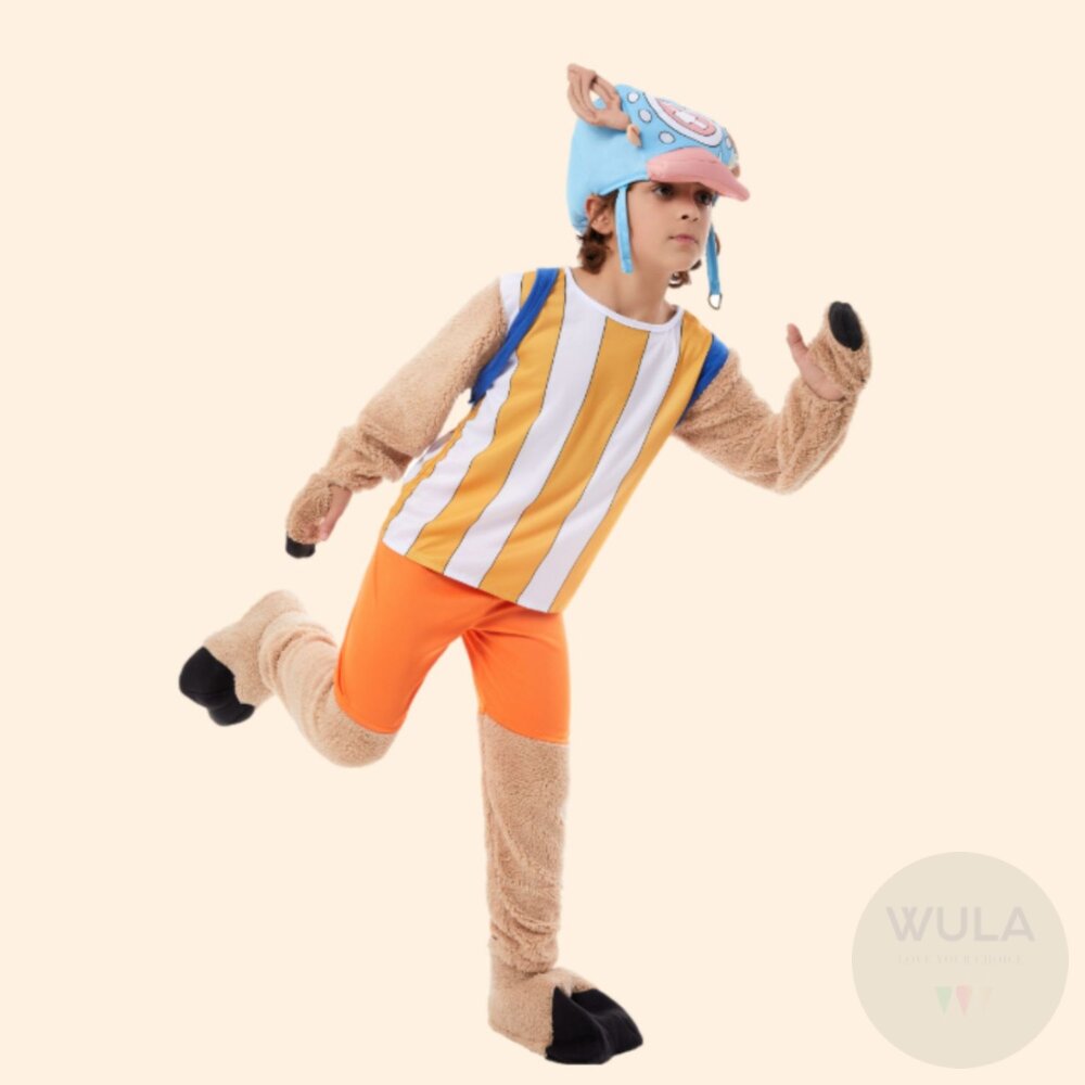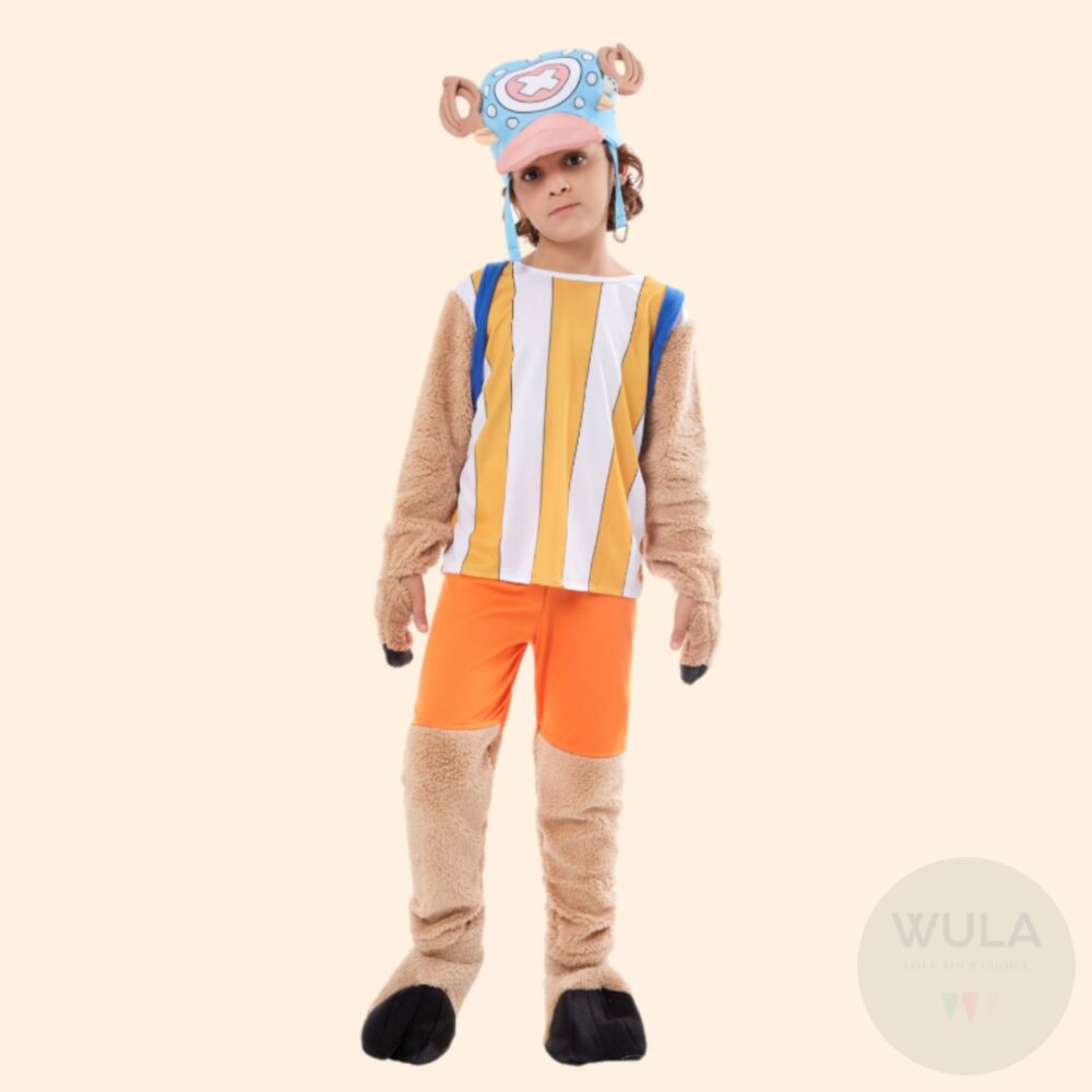 名稱:航海王-喬巴(-兒童/大人版) 內容物:1.上衣 2.褲子 3.腳套(雙) 4.帽子 5.背包