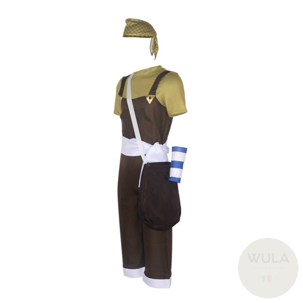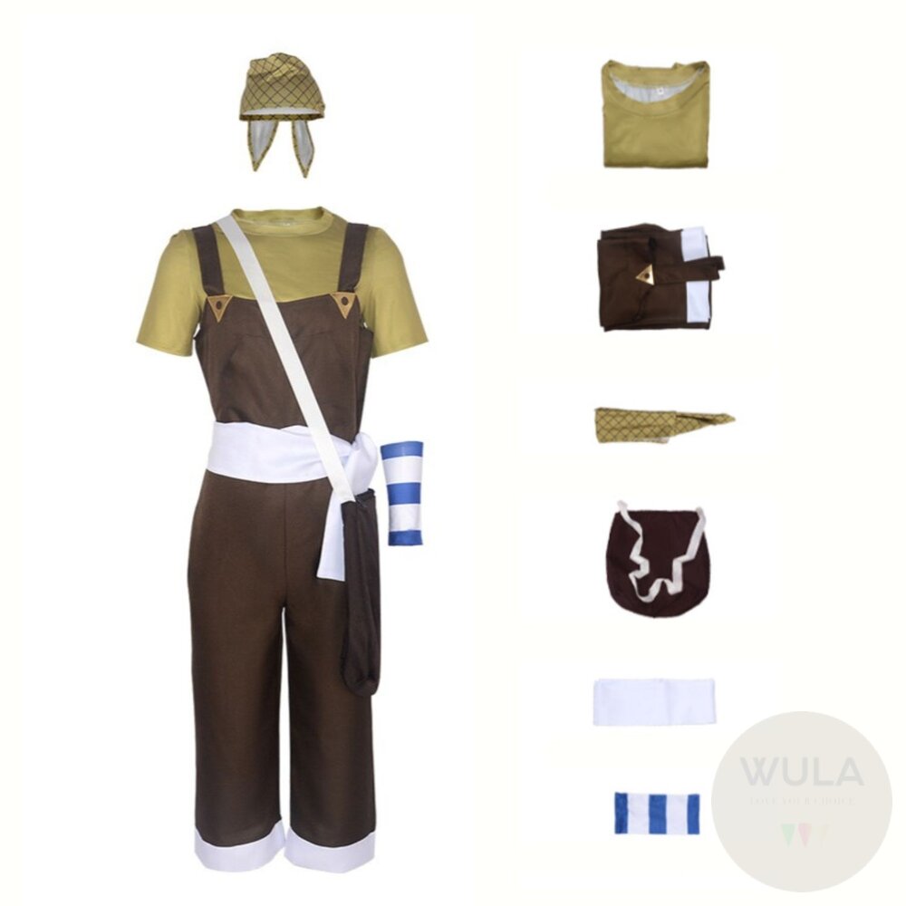 名稱:航海王-騙人布 內容物:1.T恤 2.吊帶褲 3.頭巾 4.斜背包 5.腰布 6.護腕
