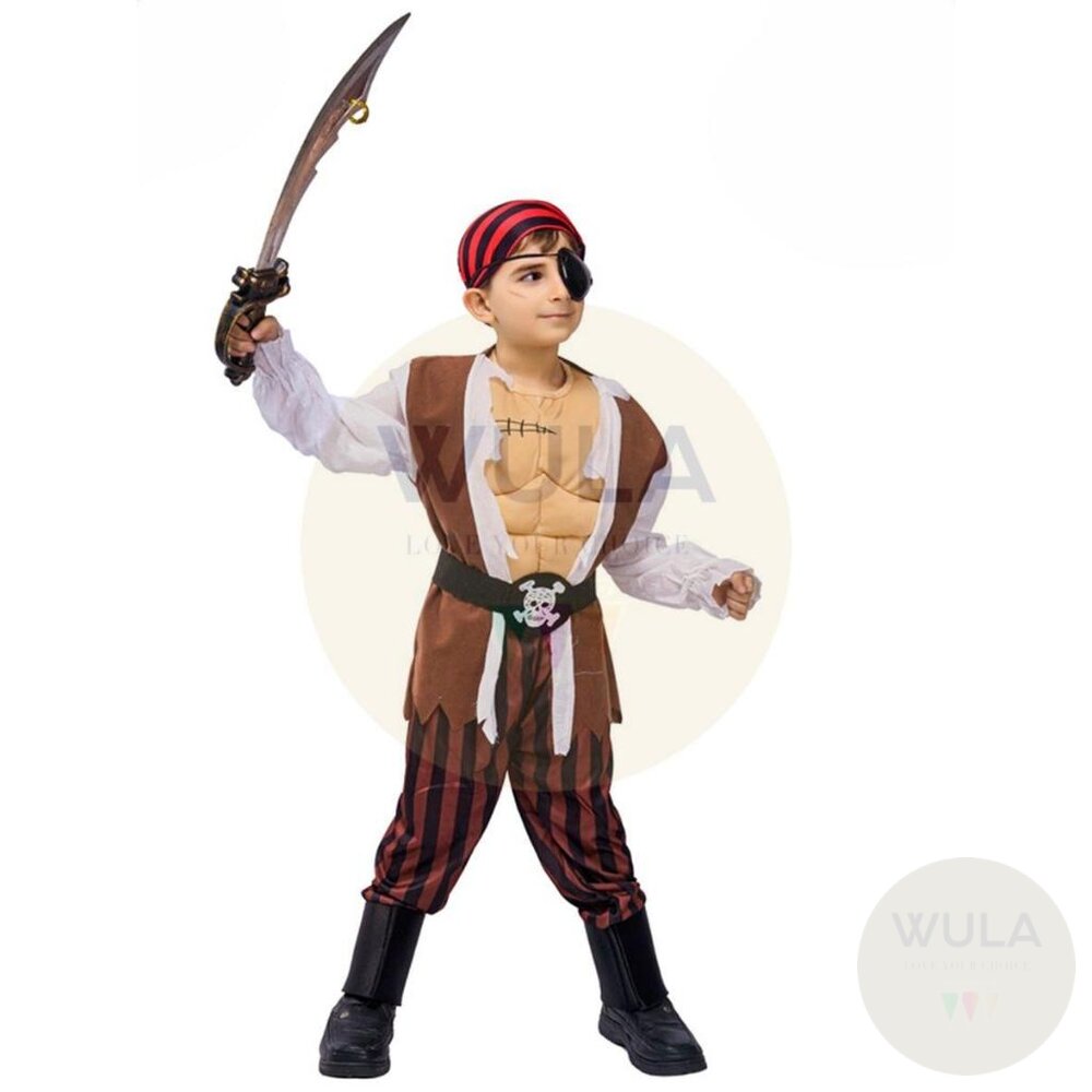 名稱:假肌肉裝海盜(兒童版) 內容物:1.肌肉背心 2.外套 3.褲子 4.腰帶 5.眼罩 6.帽子