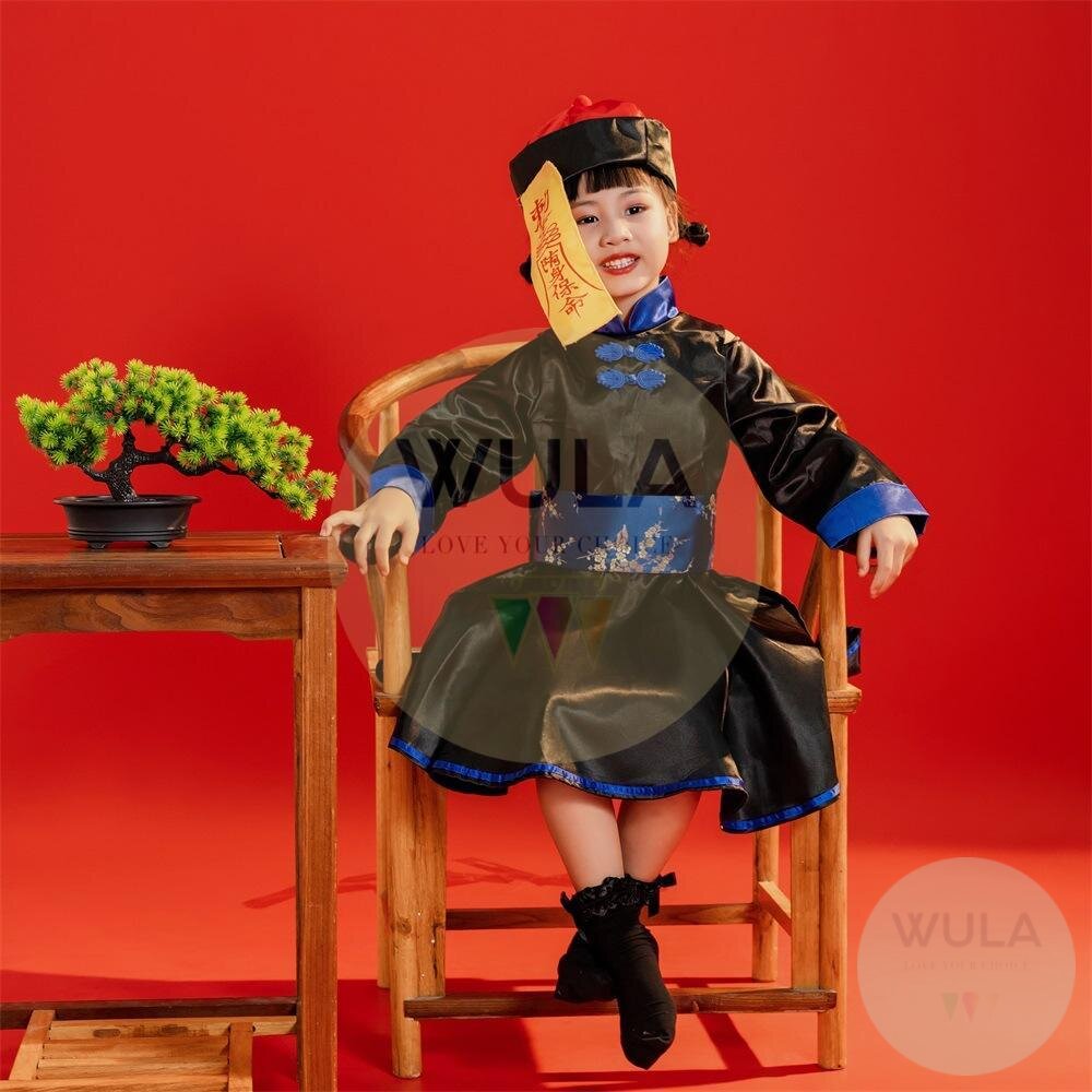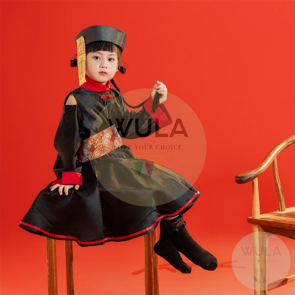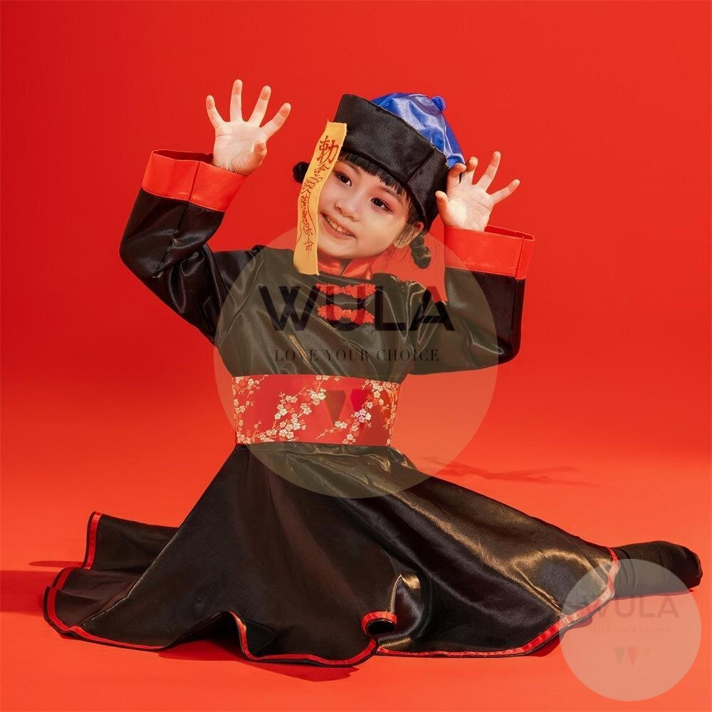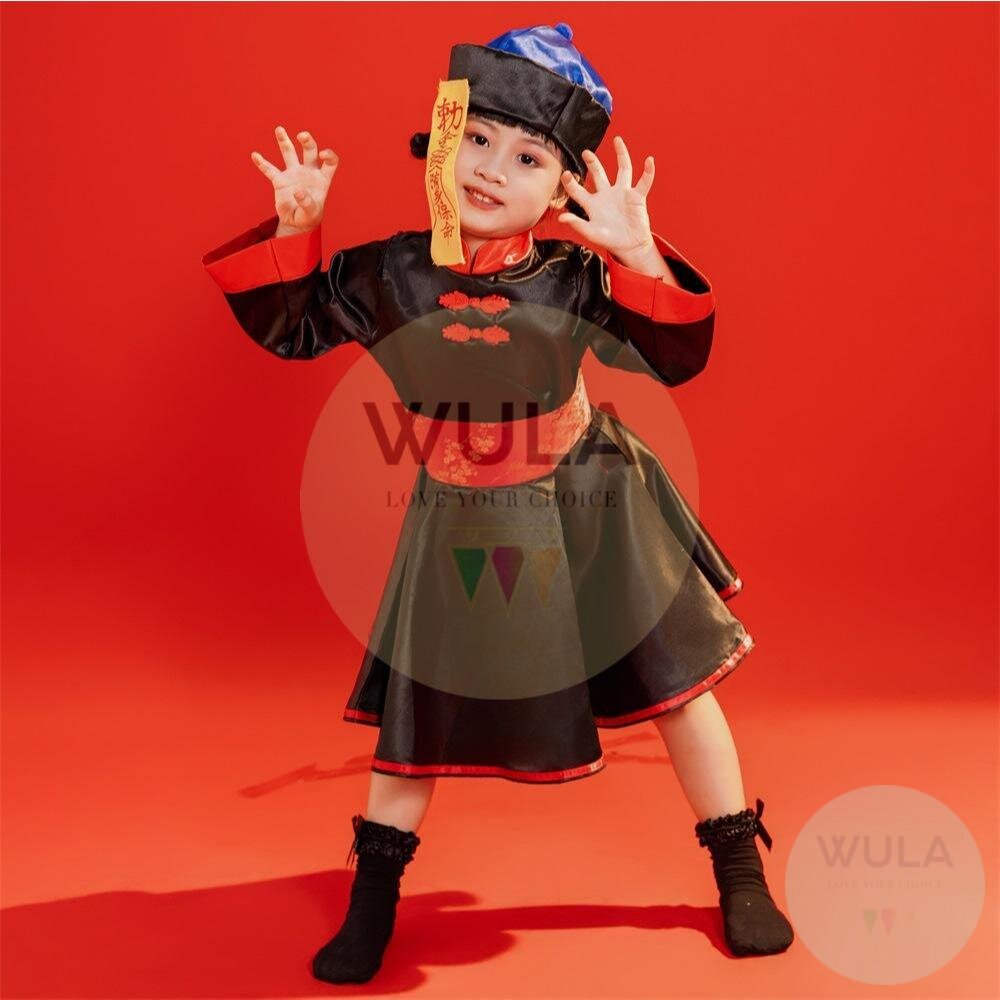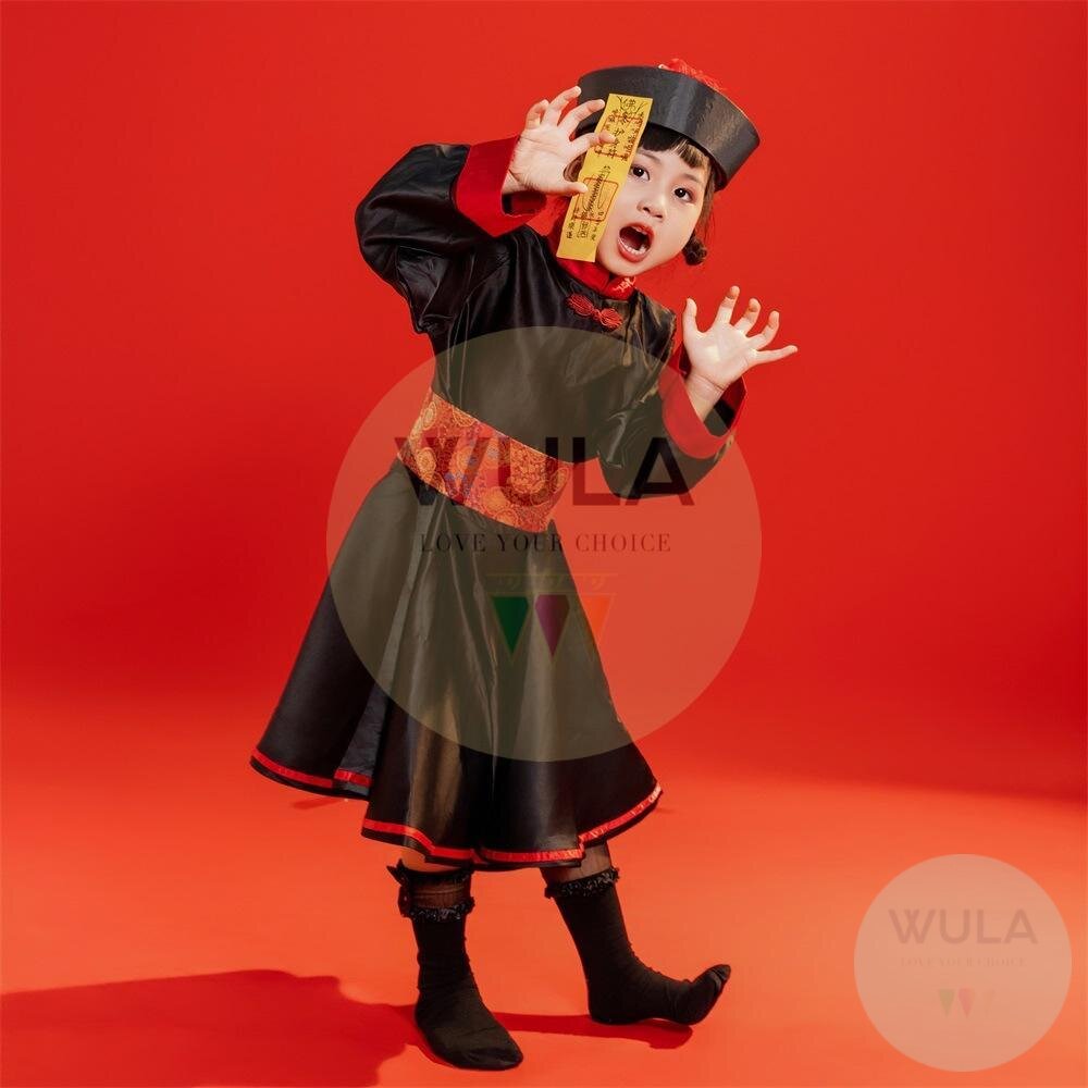 名稱:旗袍女殭屍(兒童版) 材質:滌綸 內容物:1.連身裙 2.腰布 3.帽子 4.符咒道具