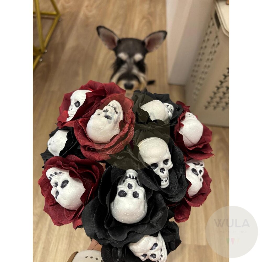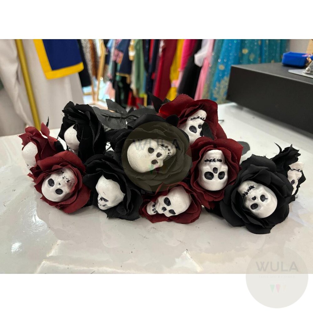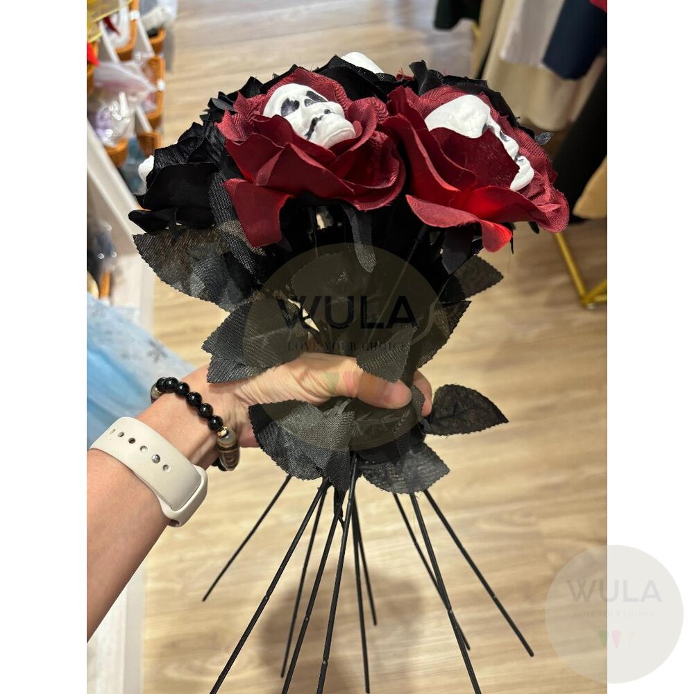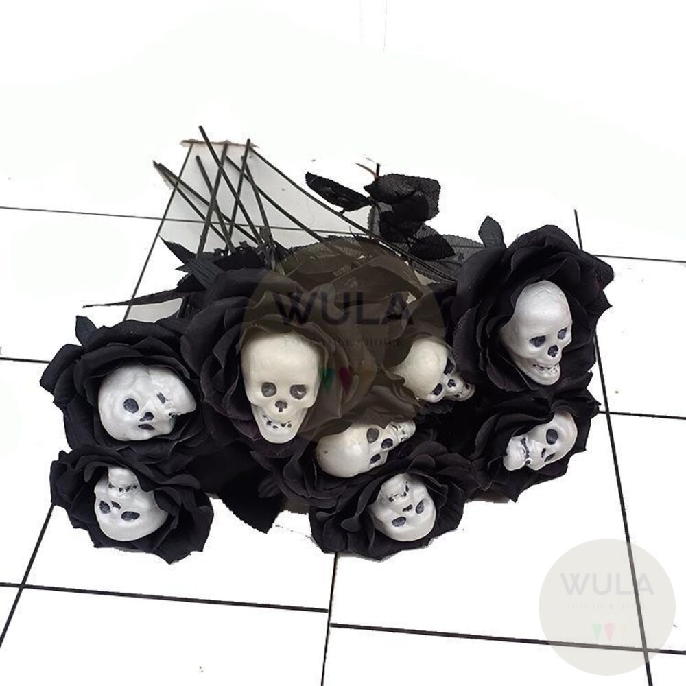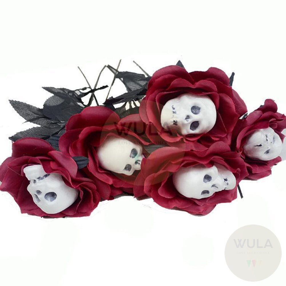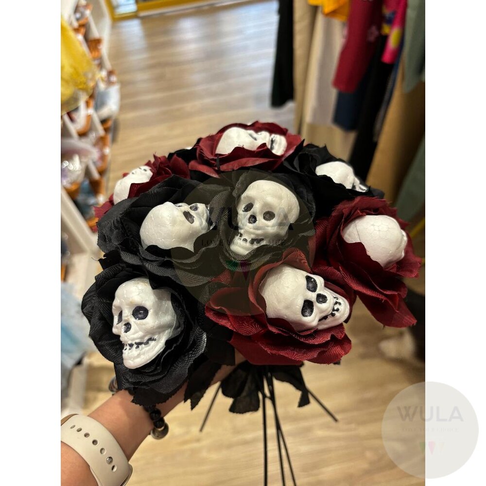 名稱:骷顱玫瑰假花(2色) 尺寸:7cm(花朵直徑), 35cm(總長)