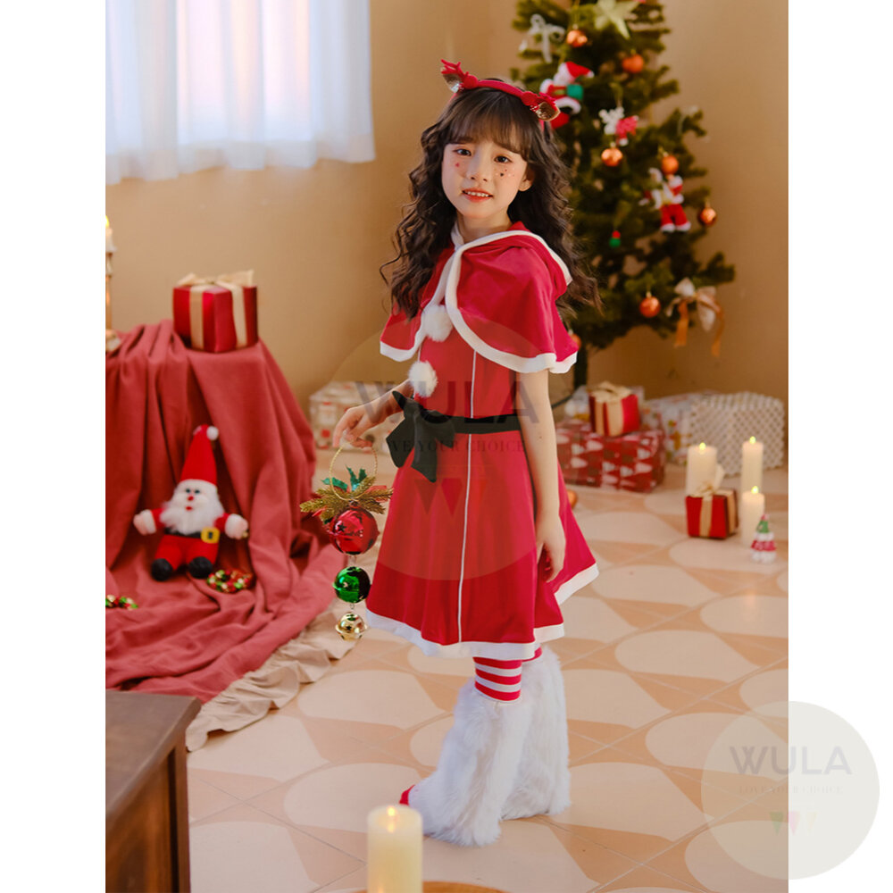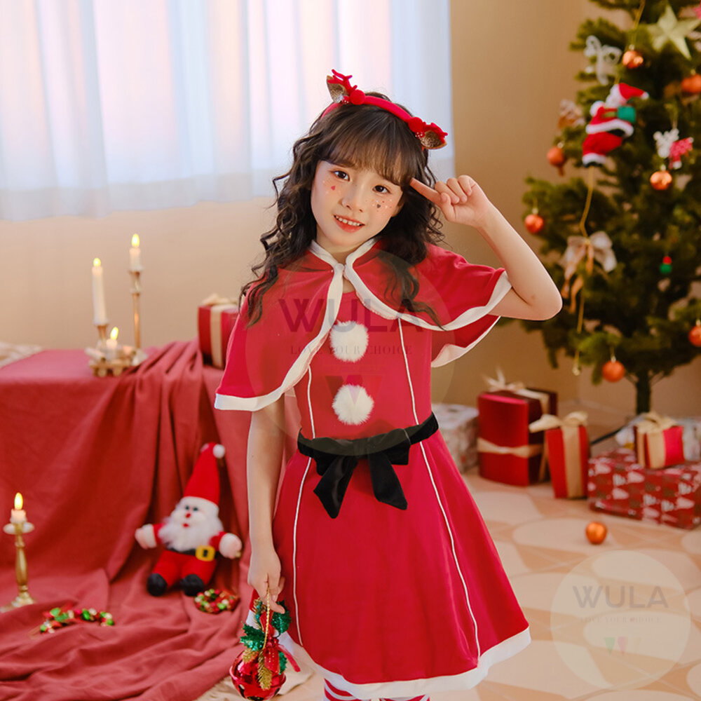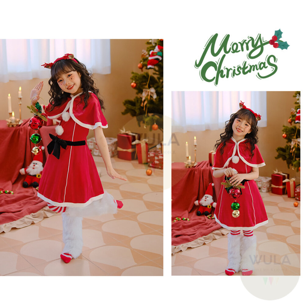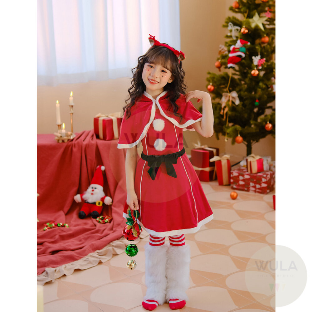 小朋友聖誕裙 女童聖誕服裝 紅色聖誕裙 兒童聖誕套裝 聖誕
