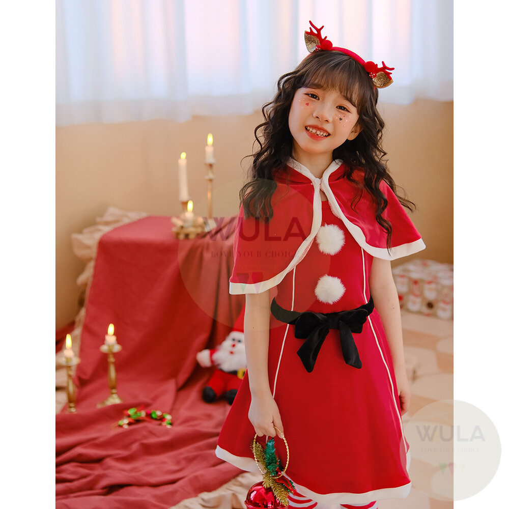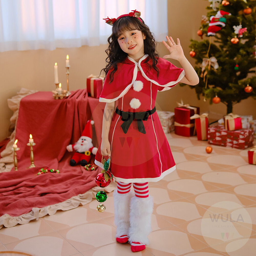 名稱:斗篷披肩聖誕裙 材質:聚酯纖維 套裝內容物:1.連身裙 2.披肩