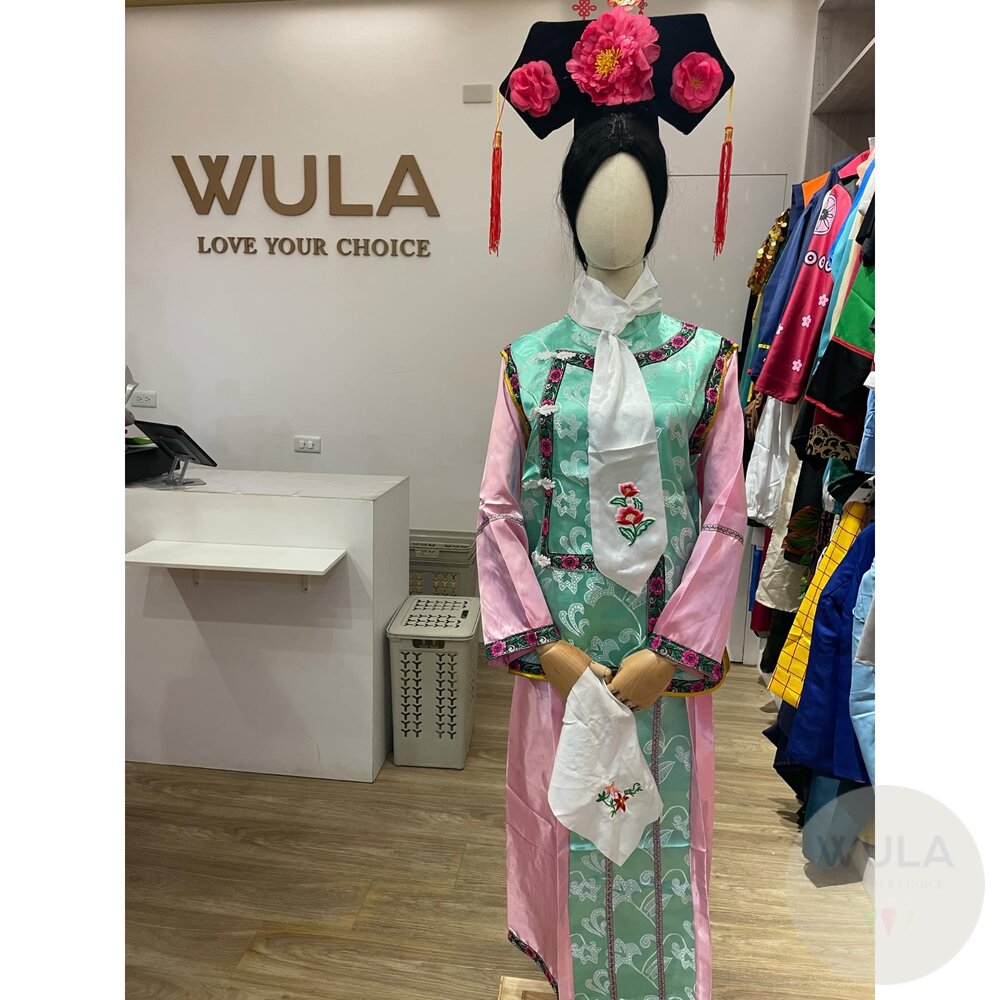 名稱:清朝格格宮廷裝(多色) 內容物:1.大拉翅 2.上衣 3.領巾 4.裙子 5.手帕