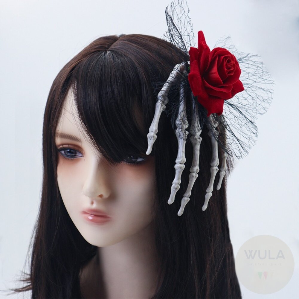 萬聖節髮夾 骷顱髮飾 骷顱玫瑰花髮夾 假手 恐怖道具 萬聖節道具 鬼手髮夾