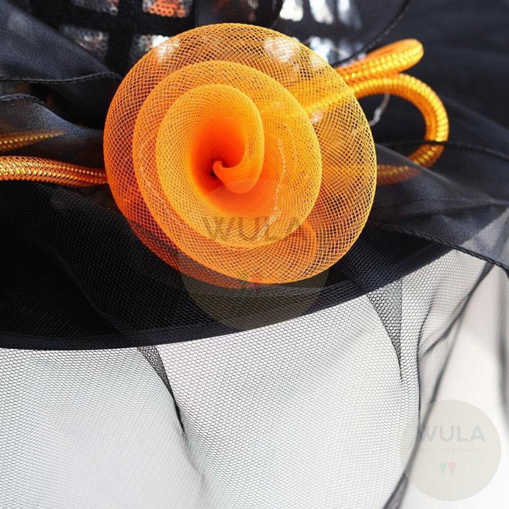 名稱:發光巫婆帽(多款) 材質:密絲絨、亮片、網紗 尺寸:100*39cm(發光款), 75*38cm(黑色蕾絲款) 發光款使用方式:(點一下)快閃->(點一下)慢閃->(點一下)恆亮