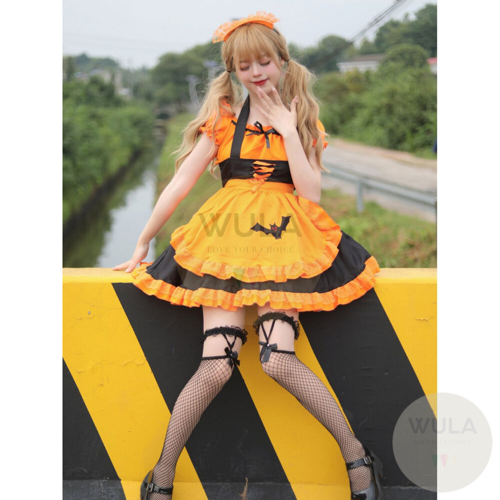 萬聖節大尺碼女僕裝 南瓜女僕服裝 萬聖節大尺碼服裝 南瓜衣服 橘色女僕裝