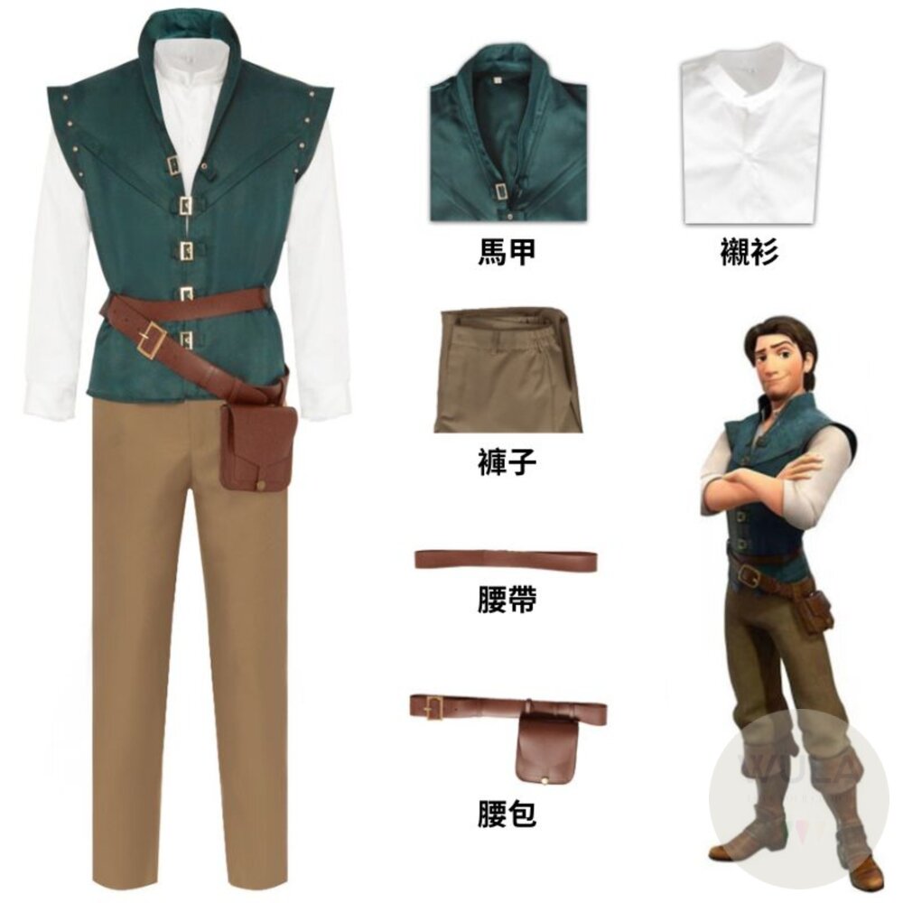 名稱:長髮公主-費林雷德 內容物:1.襯衫 2.馬甲 3.長褲 4.腰帶 5.腰包(含腰帶)