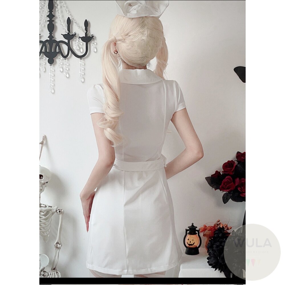 名稱:修身護士裝(2色) 材質:聚酯纖維 內容物:1.頭飾 2.連衣裙