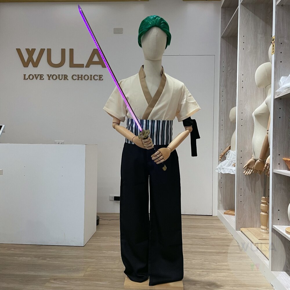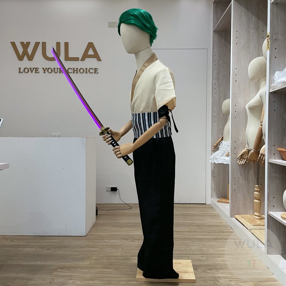 ★請使用附贈的充電線充電,快充線反而會充不進去 名稱:海賊王索隆佩刀(充電版) 內容物:1.劍 2.刀鞘 3.TypeC充電線 尺寸:全長104cm, 刃長76cm, 炳長28cm, 刃厚0.7cm 使用方式:輕拍(或輕點)劍把末梢2次控制開關,40分鐘充飽電,亮燈時長約25分鐘