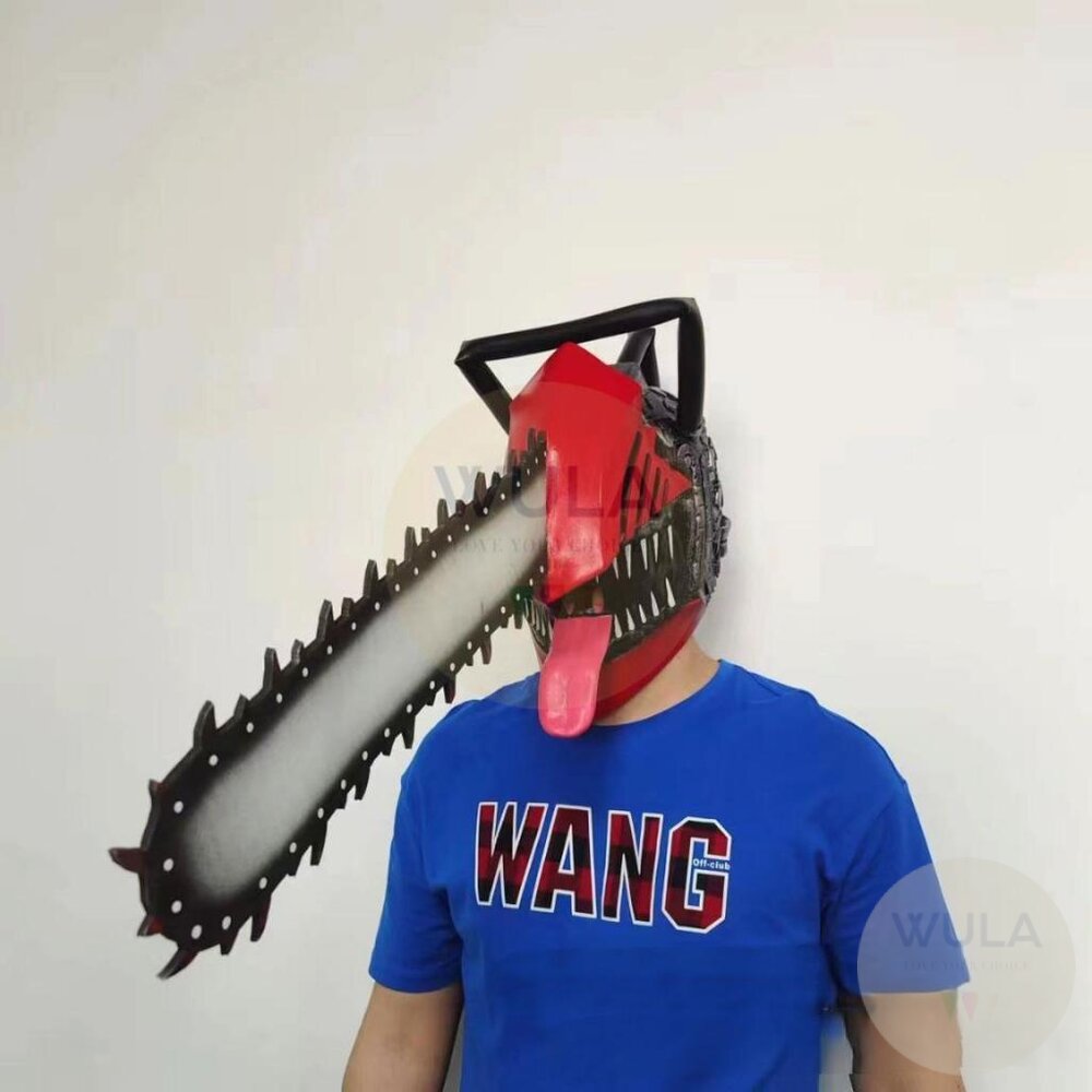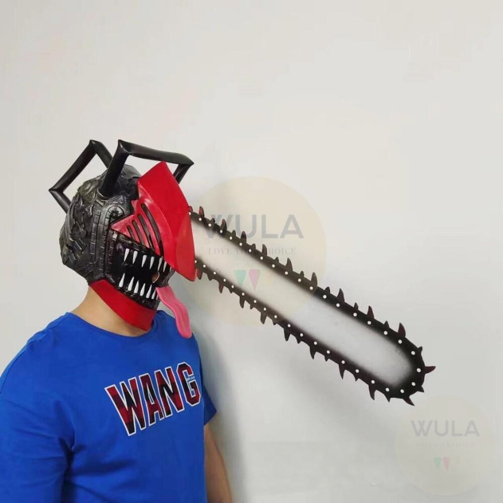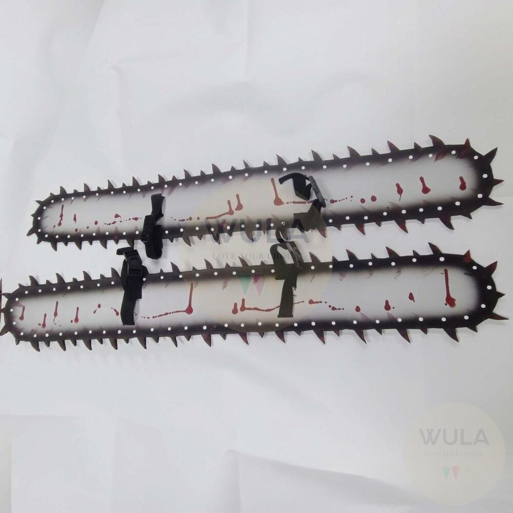 ▲頭套鋸片為軟質可彎曲 商品名稱:鏈鋸人 頭套材質:乳膠、EVA 波奇塔材質:水晶絨、PP棉 尺寸: 頭套(舌頭款)-鋸片長49cm, 總長75cm 電鋸手(對)-長90cm, 寬15cm