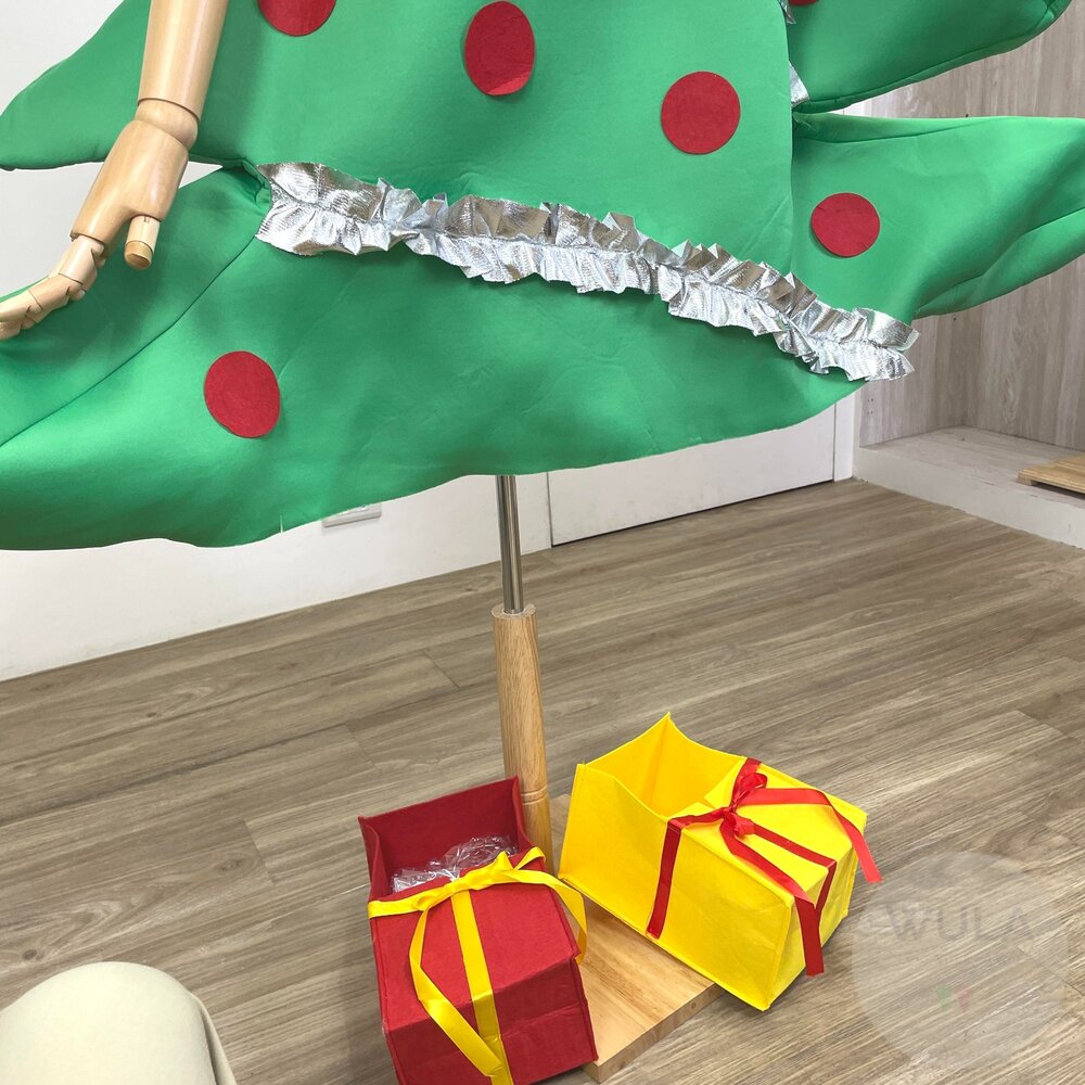 名稱:聖誕樹玩偶裝 內容物:1.連身裝 2.禮物鞋套(雙)