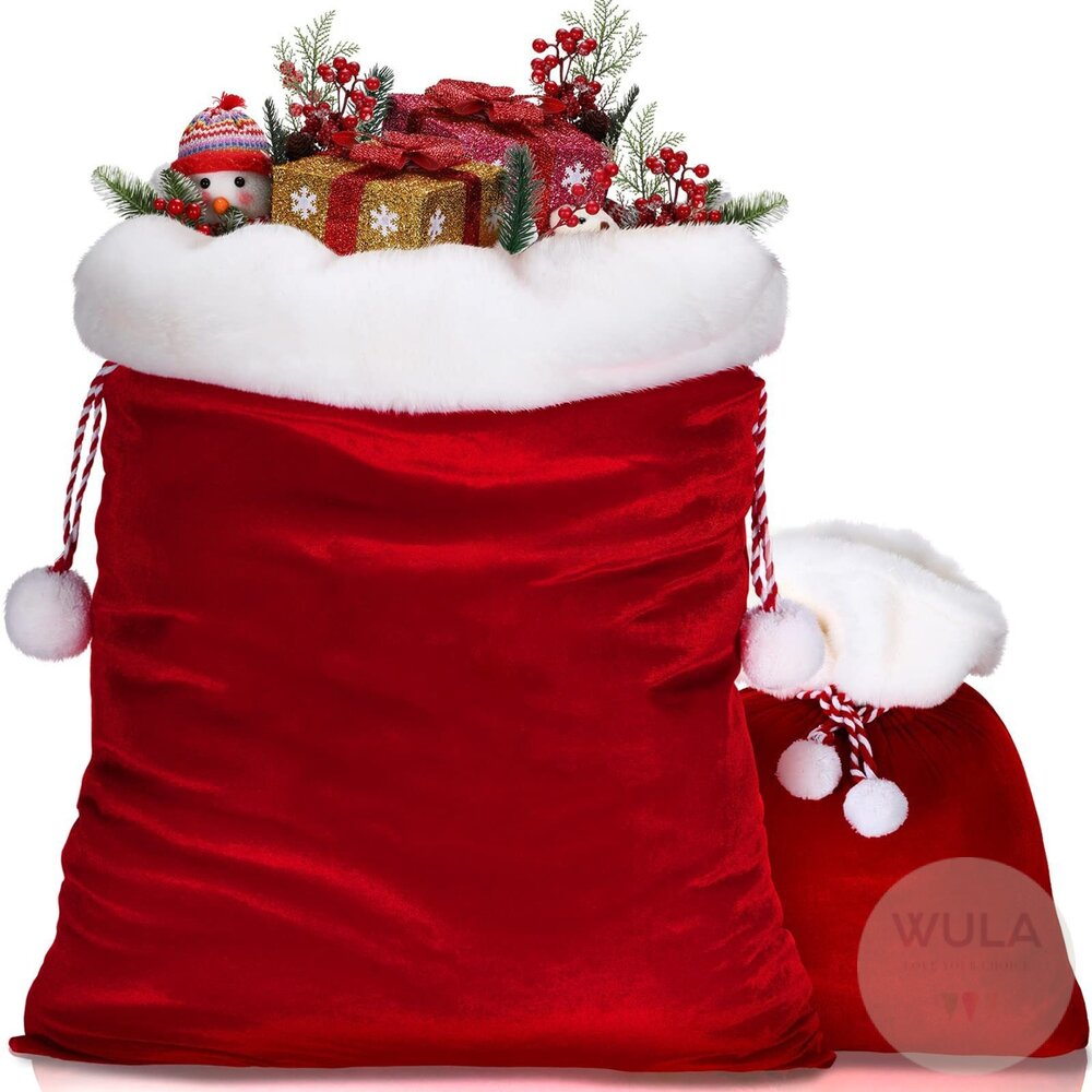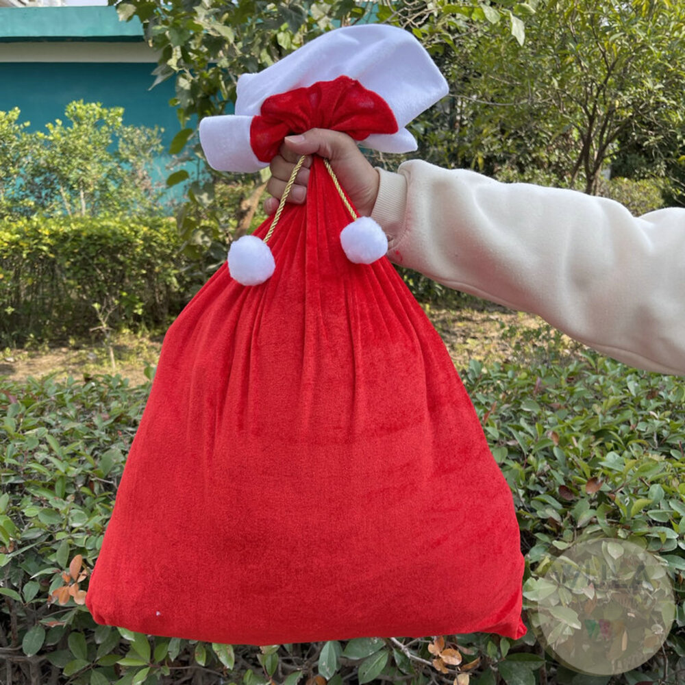 名稱:聖誕老人禮物袋 材質:絨布、金絲絨