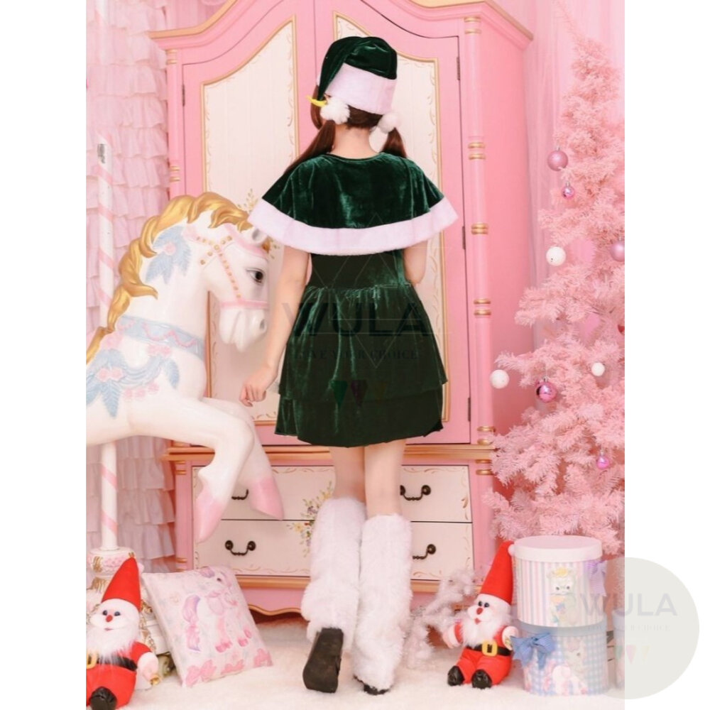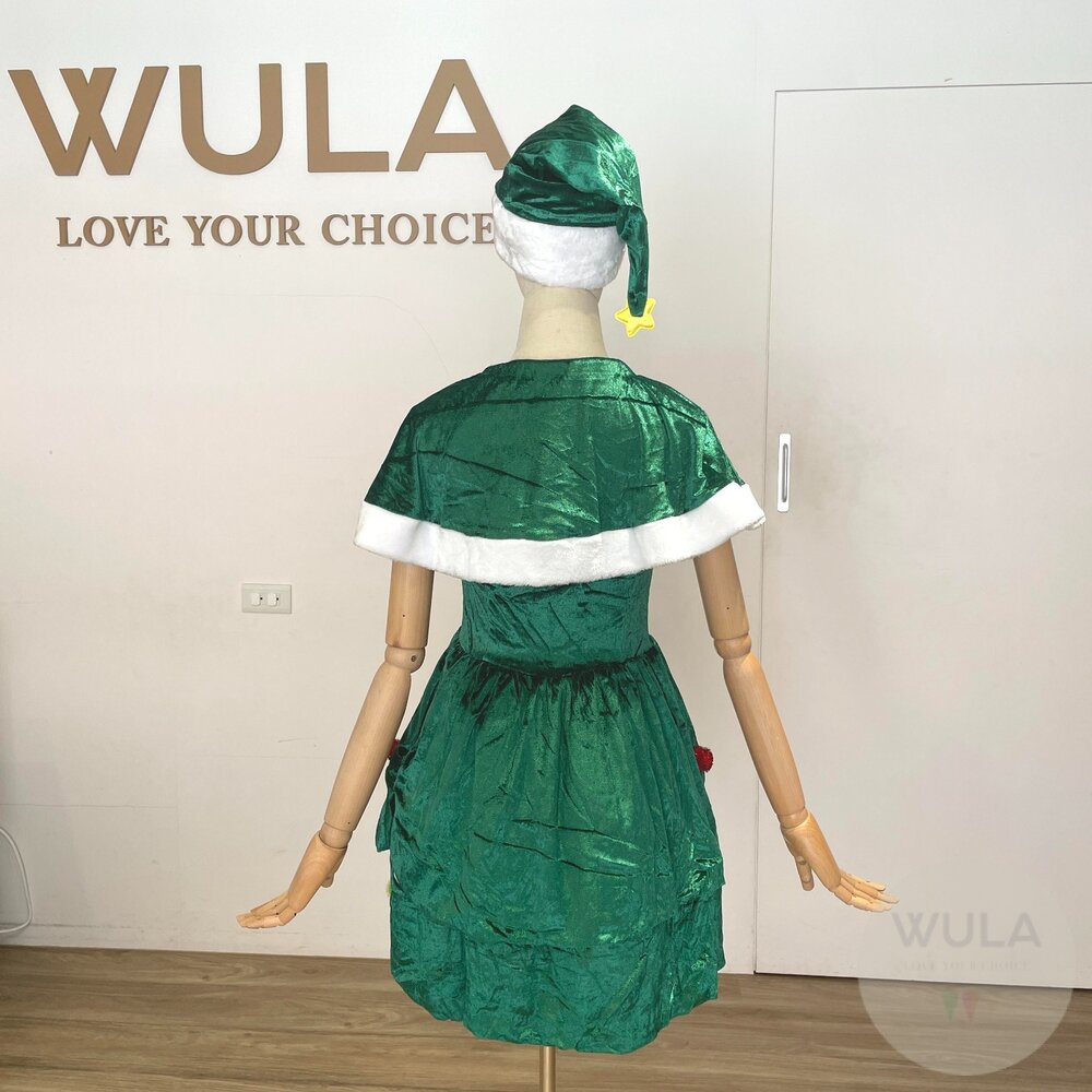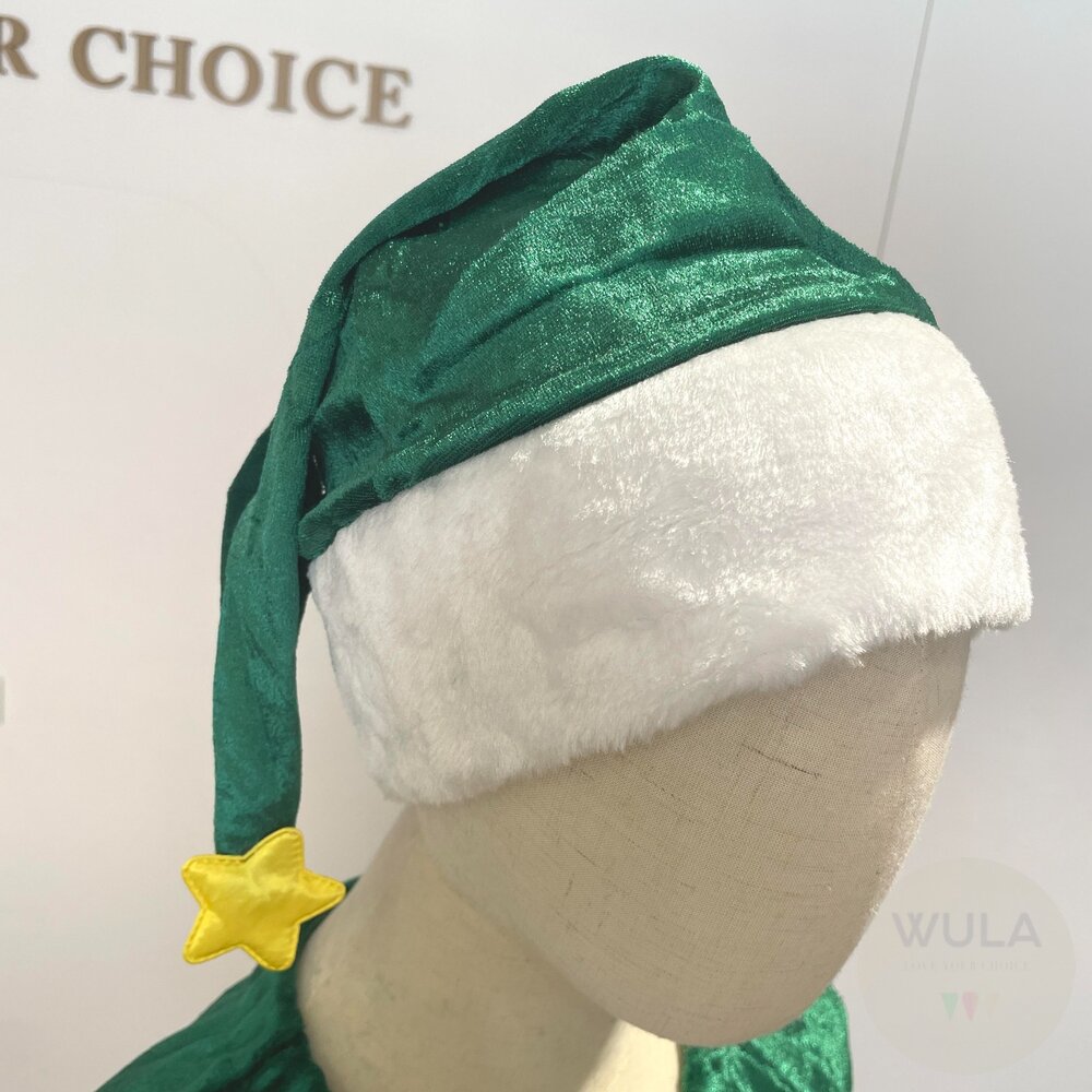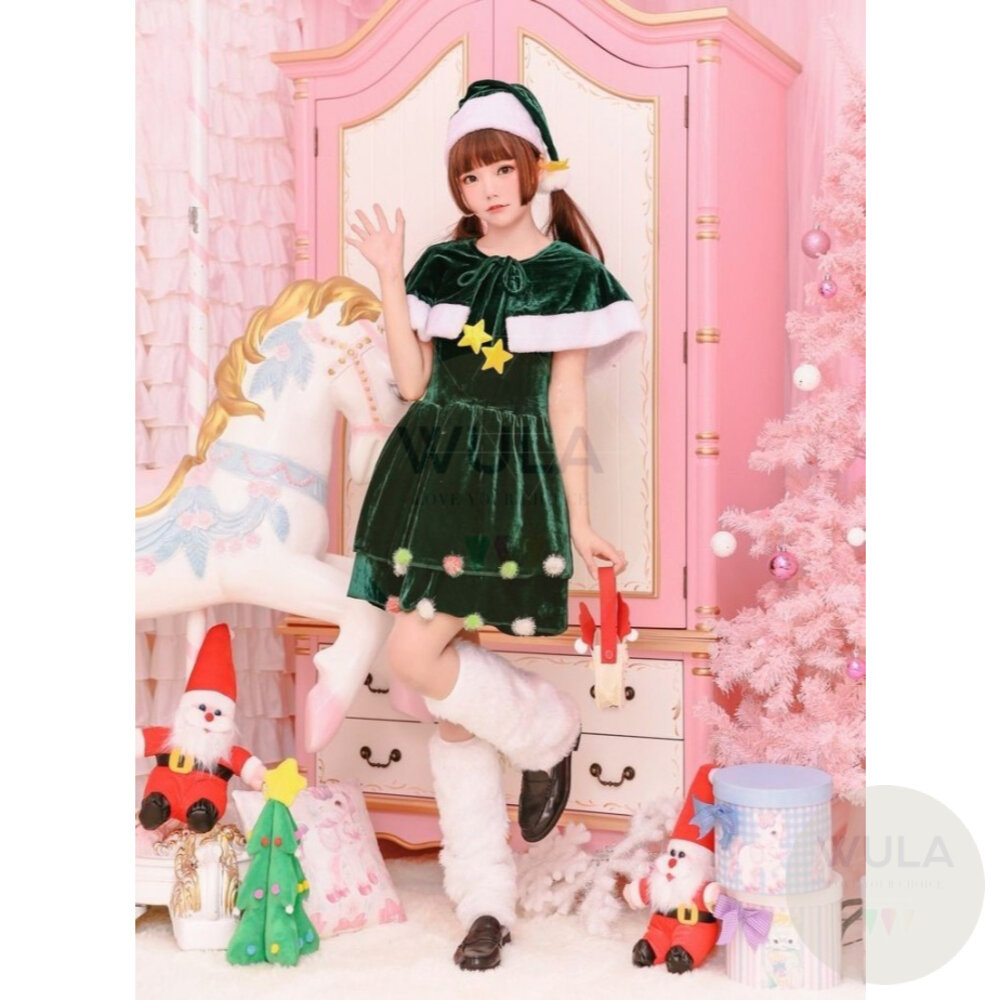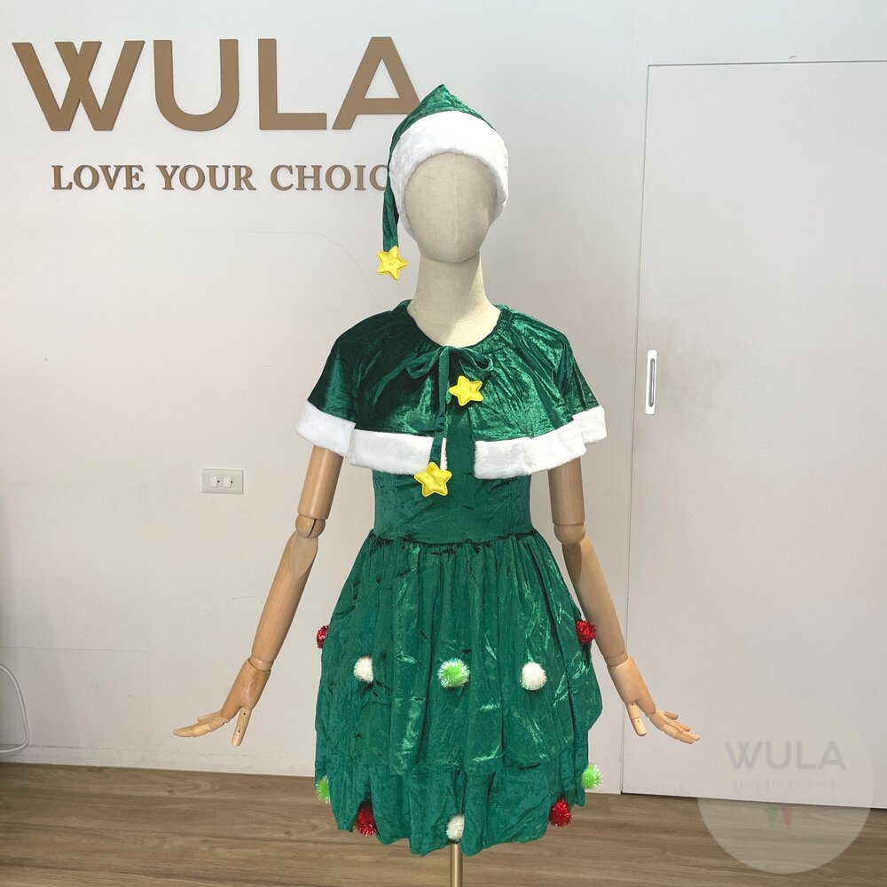 名稱:聖誕樹連身裙 材質:絨 內容物:1.連身裙(帶披肩) 2.聖誕帽
