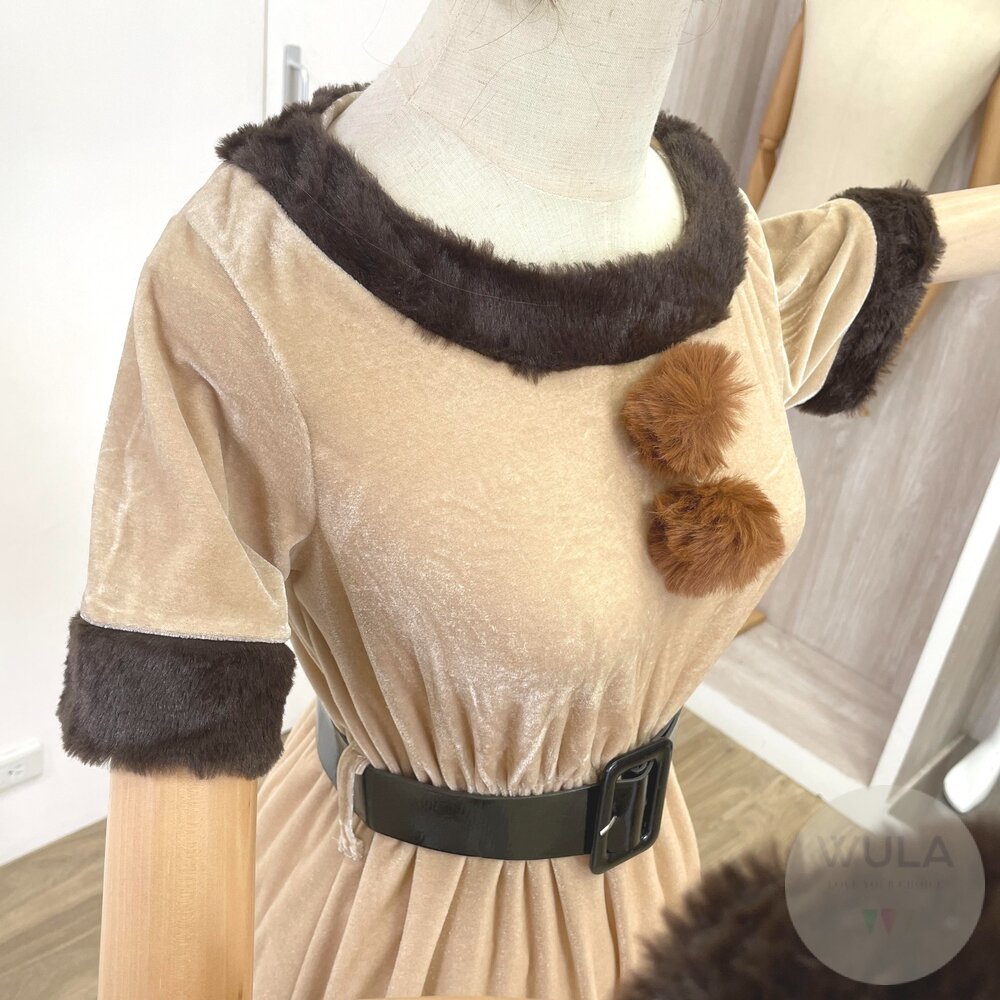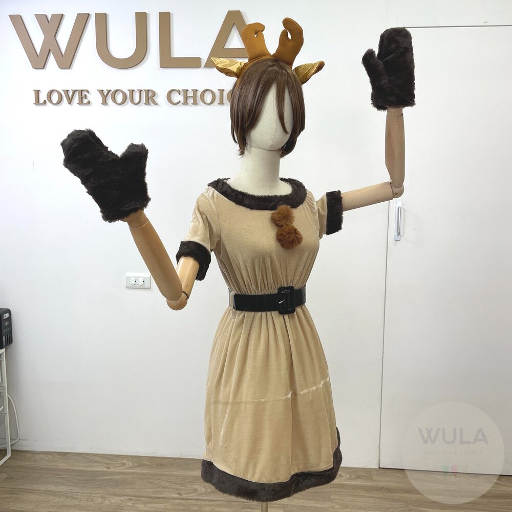 名稱:Q角馴鹿裙裝 材質:聚酯纖維 內容物:1.連身裙 2.髮箍 3.腰帶 4.手套(雙)
